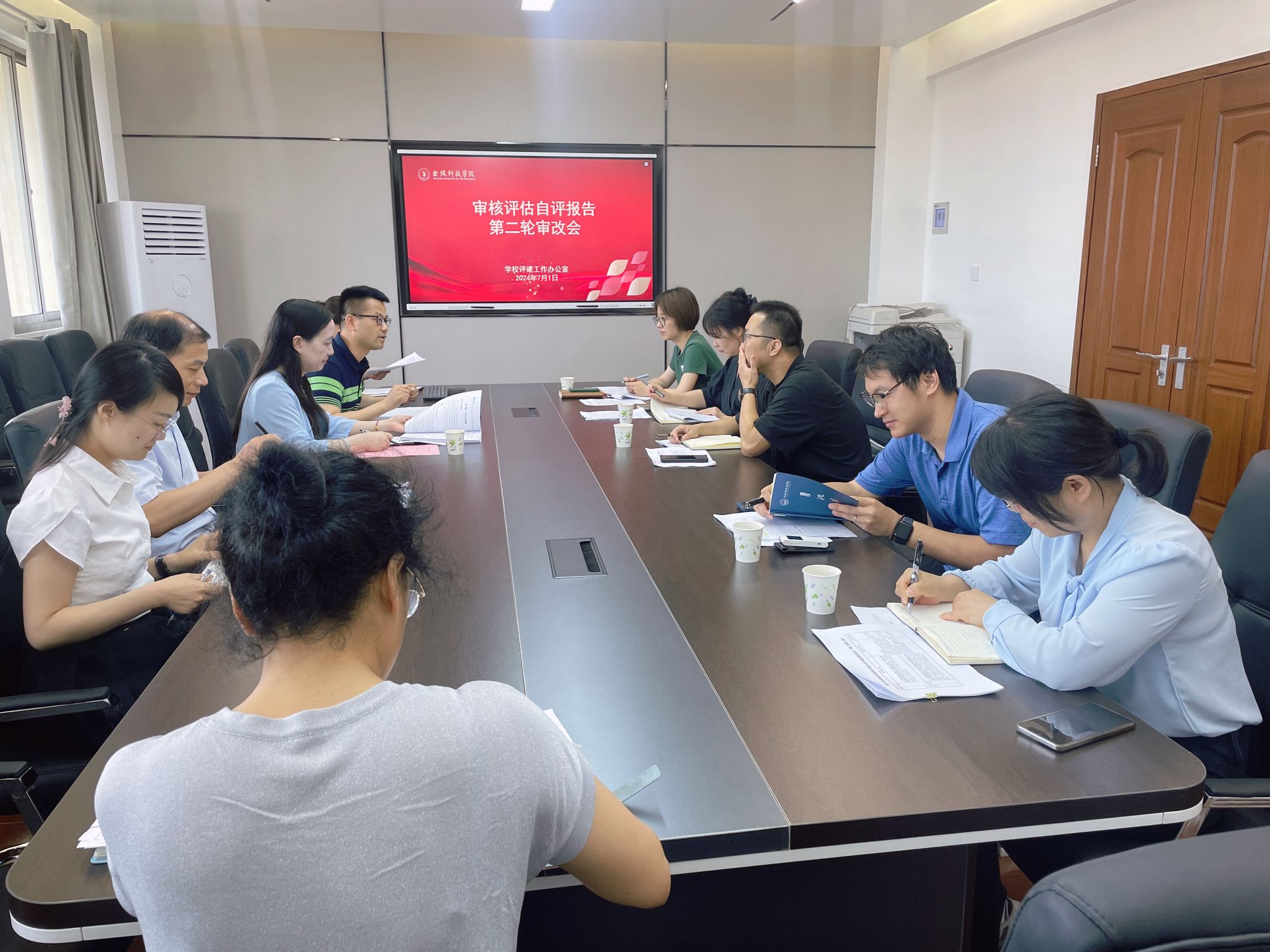 会上,教学质量评估中心负责人通报了自评报告工作最新进展,从指标内涵研究、报告逻辑理解、细节规范执行、支撑材料选择等方面指出存在的不足和改进的方向,并布置了下一阶段的审改任务。与会人员就修改过程中的问题进行了交流。