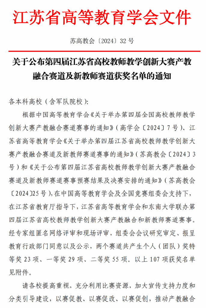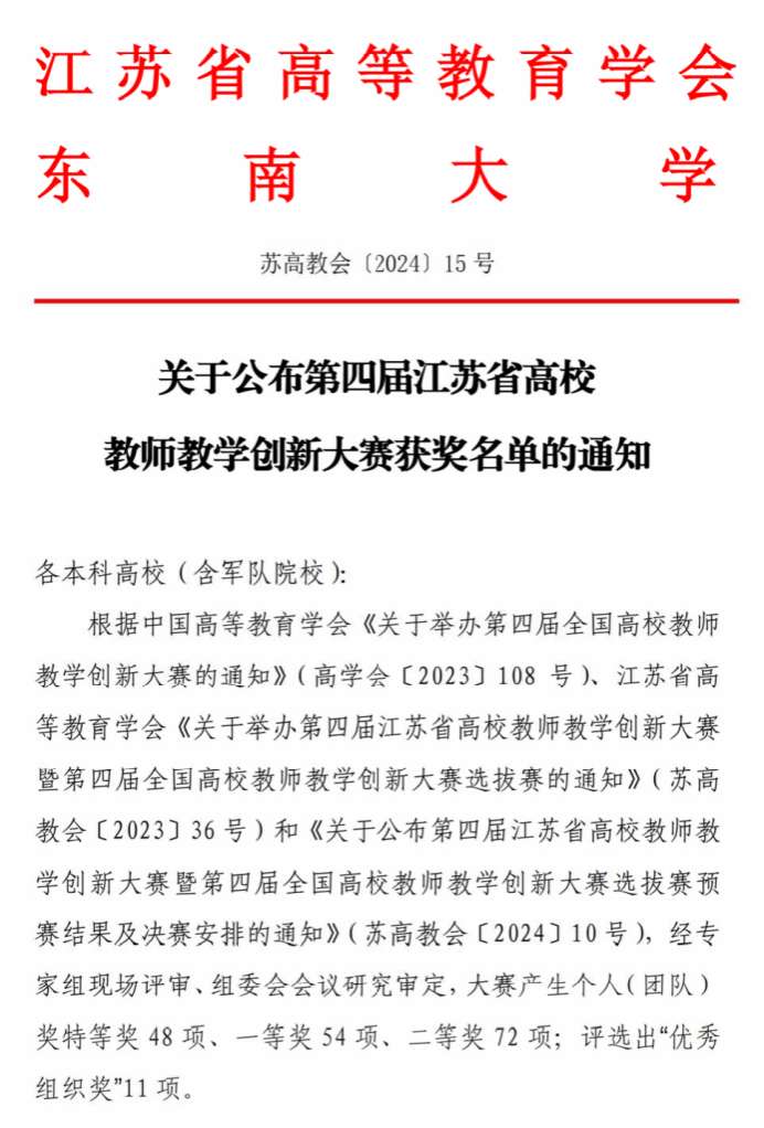 日前,江苏省高等教育学会正式公布评审结果(苏高教会〔2024〕15号、苏高教会〔2024〕32号文),beat365在第四届江苏省高校教师教学创新大赛(本科)暨第四届全国高校教师教学创新大赛选拔赛、第四届江苏省高校教师教学创新大赛产教融合赛道及新教师赛道中喜获佳绩。艺术学院范丽、建筑工程学院李恩康、机电工程学院智淑亚、理学院朱心阳4位老师经过激烈角逐后,分别荣获产教融合赛道一等奖、新教师赛道一等奖、正高组二等奖、中级及以下组二等奖。