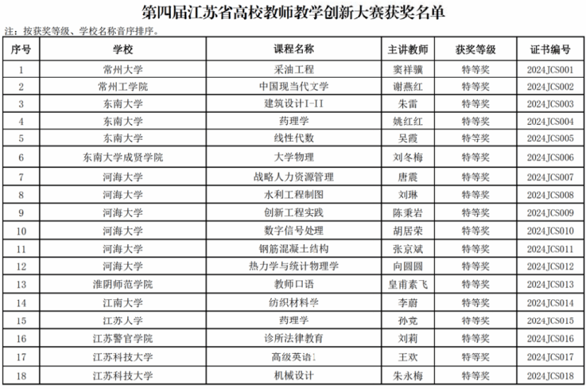 自本届赛事开赛以来,教学质量评估中心认真研读比赛方案,精准吃透评价标准,会同相关学院及部门协同发力,以学校教师教学奖评选为平台,开展第四届江苏省高校教师教学创新大赛校赛选拔赛,合计推荐6位老师参加省赛,其中4位教师获奖。范丽老师的《服饰图案》、李恩康老师的《城乡规划原理》等2门课程作品在全省参赛作品中脱颖而出,顺利进入省赛决赛并获得一等奖。