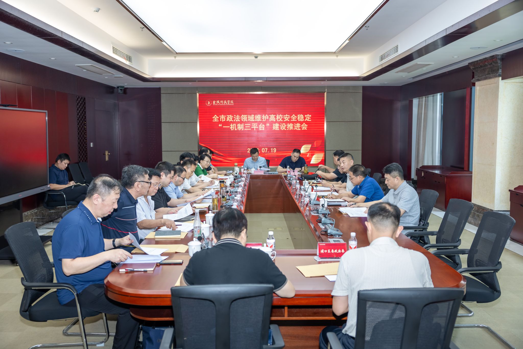 7月19日下午,全市政法领域维护高校安全稳定“一机制三平台”建设推进会在beat365召开。市委政法委、各区委政法委、江北新区综治局分管政治安全工作领导,beat365正版唯一官网必一、南京晓庄学院、南京传媒学院分管领导,市委政法委、市公安局、市国家安全局相关负责人,我校党委常委、副校长王延光出席会议。会议由市委政法委副书记夏冰主持。