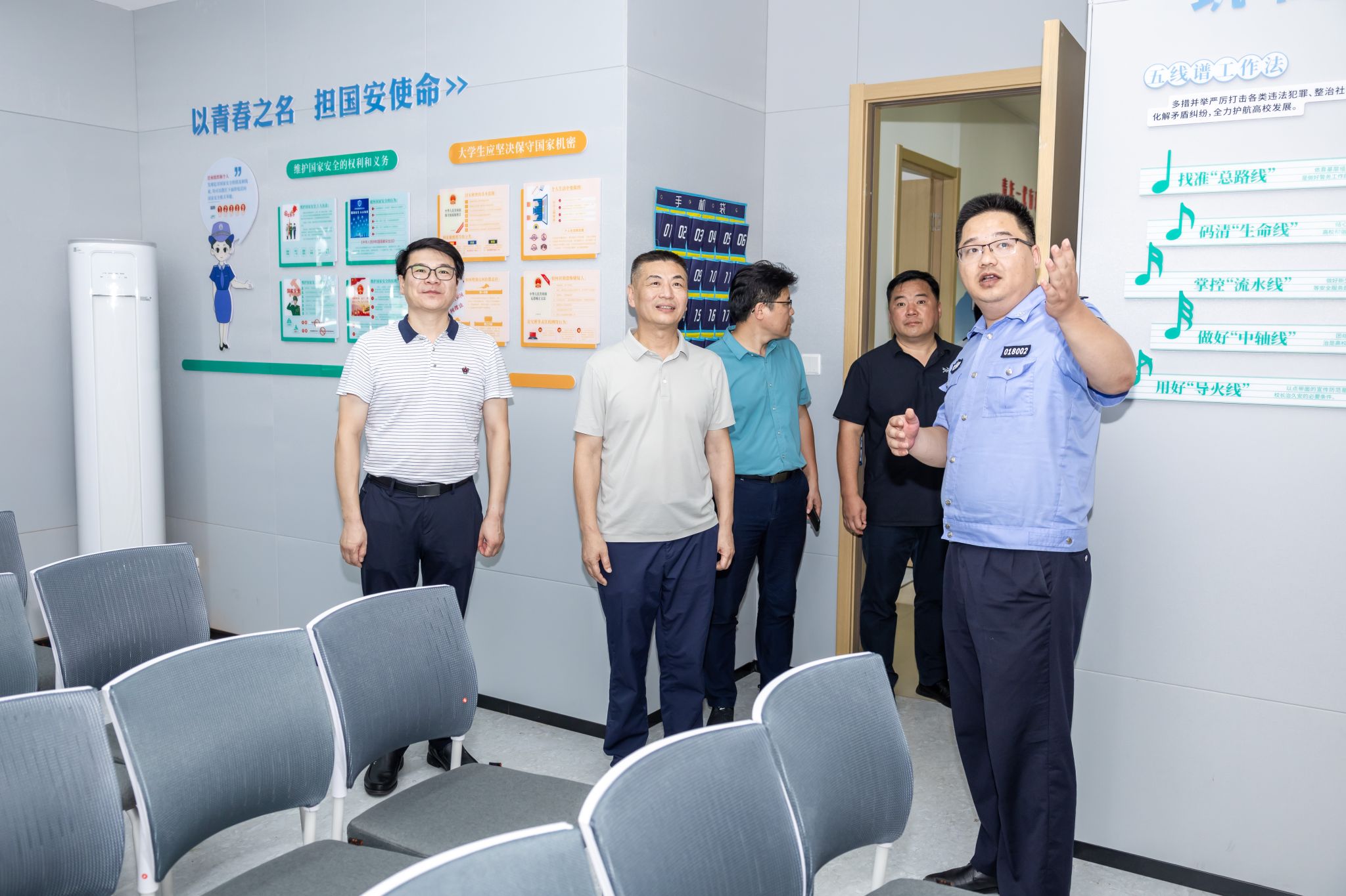 夏冰指出,近年来,我市坚决贯彻落实中央和省委系列部署,高度重视、持续推进驻宁高校安全稳定工作。按照市委要求,全市政法系统主动作为、强化统筹、整合资源、创新手段,在完善校地联动、维护高校安全稳定工作方面进行了积极探索与实践,通过先行试点,结合实际总结提出了党建引领高校安全稳定“一机制三平台”工作法,为统筹协调、合力维护高校安全稳定提供了有效的机制和平台保障:一是分区建立维护高校安全稳定校地协作机制,加强校地联动工作协调,助力高校提升校园突发事件应急处置能力;二是建立高校警务工作室,以警务入校服务助推校园安全;三是建立驻校服务工作站,整合政法系统和相关部门、单位服务高校法务政务资源,为推进校园治理增添法治屏障;四是助力高校“一站式”学生社区建设,优化服务管理机制,及时解决学生的思想问题与实际困难。