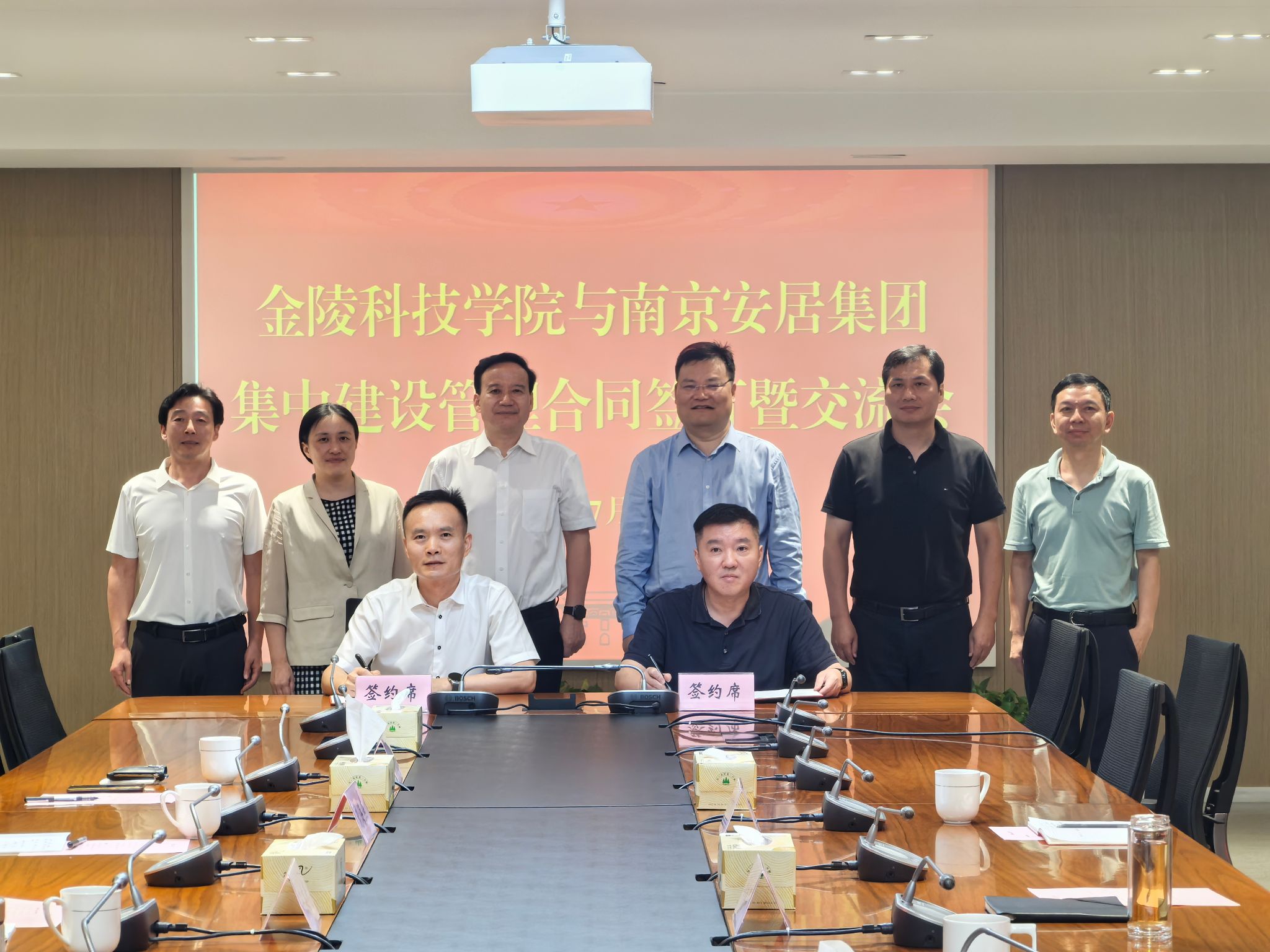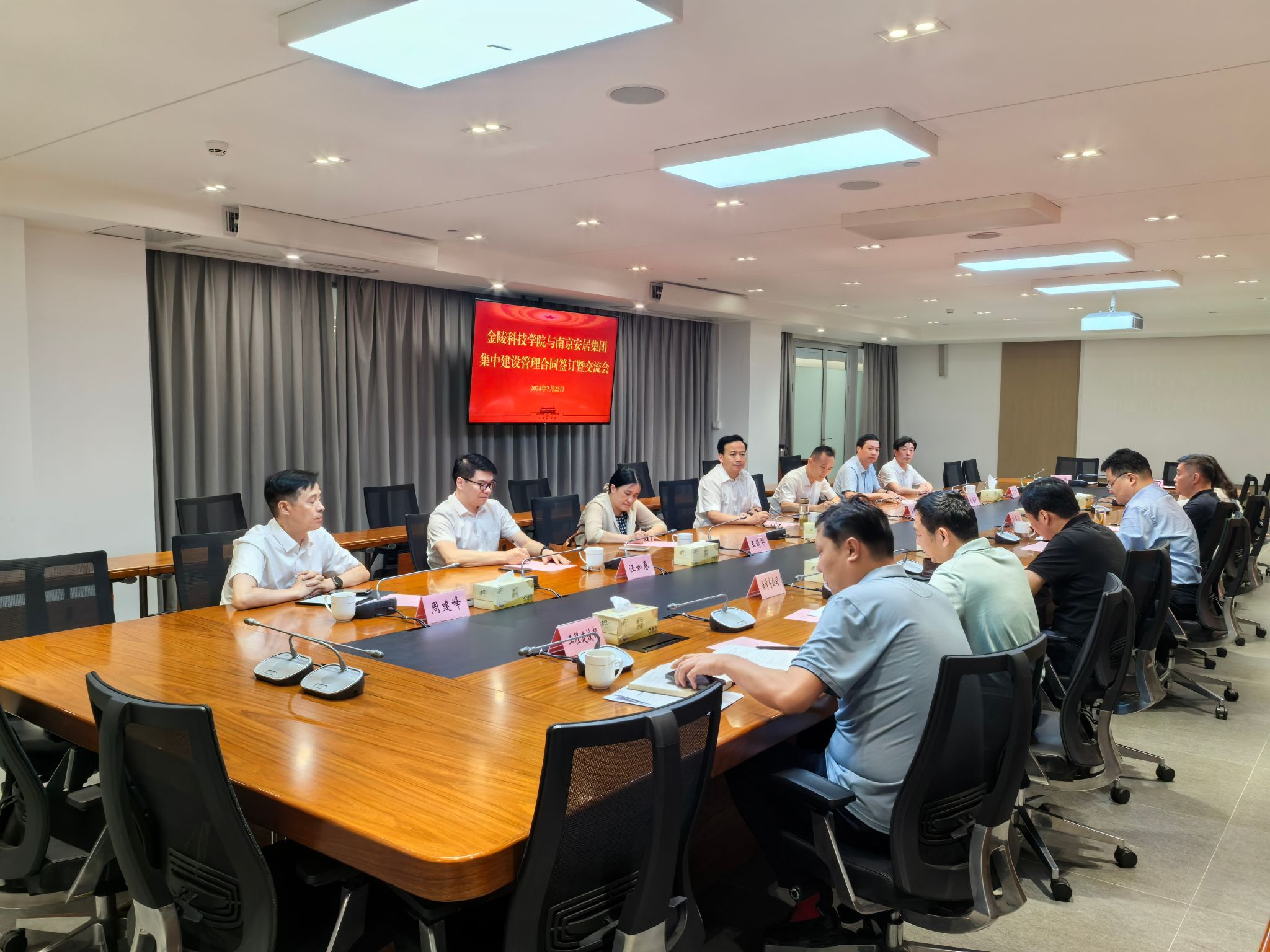 7月23日,校长刘永彪带领副校长王延光、纪委书记王靖华和相关职能部门主要负责人赴南京安居集团签订集中建设管理合同并交流。南京安居集团党委书记、董事长戴康顺,总经理黄绍斌,副总经理刘建石等接待了刘永彪一行。
