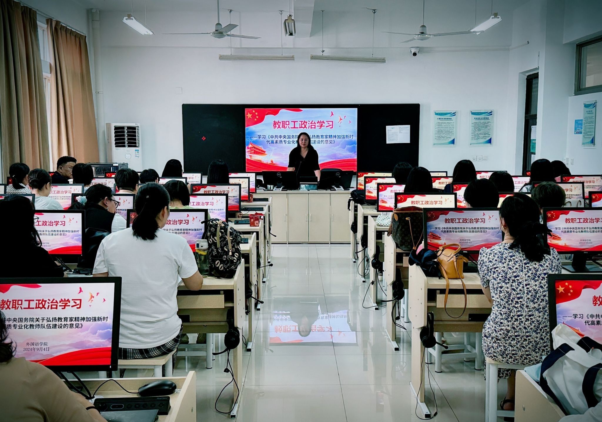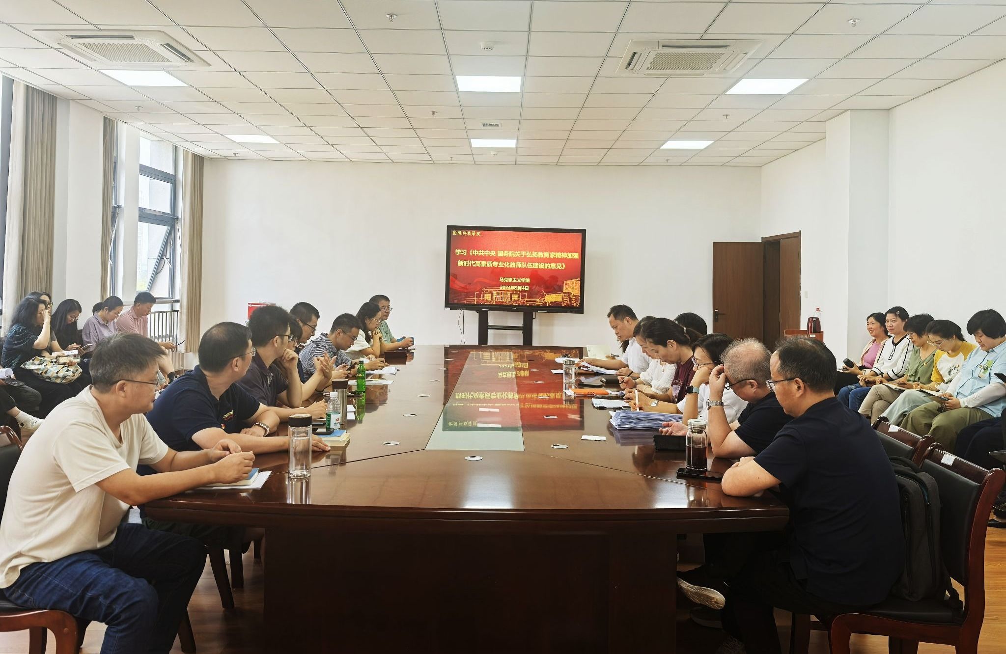 9月4日下午,beat365各二级党组织组织全体教职工开展教育家精神专题学习,重点学习了《中共中央 国务院关于弘扬教育家精神加强新时代高素质专业化教师队伍建设的意见》。