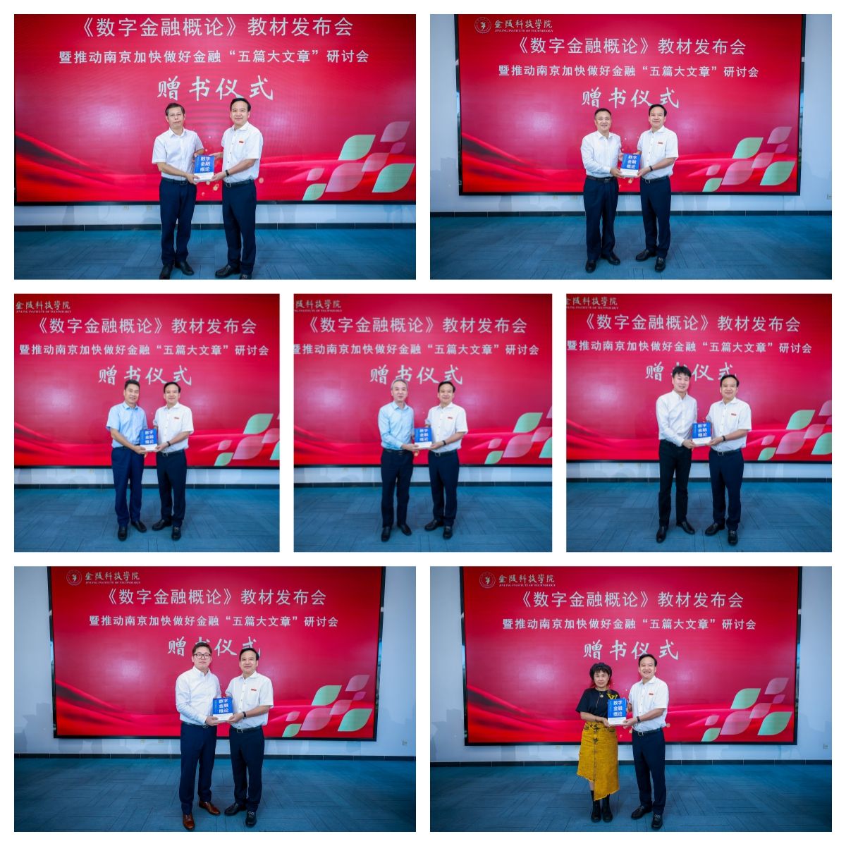 在赠书仪式环节,刘永彪分别向南京财经大学、南京审计大学、中国证监会江苏监管局领导、原中国银保监会江苏监管局领导、江苏银行业协会、江苏省金融业联合会、中国银行南京分行、中国工商银行南京分行、南京银行、万里智库、中研绿色金融研究院、尔特数科等单位和嘉宾赠送了《数字金融概论》。