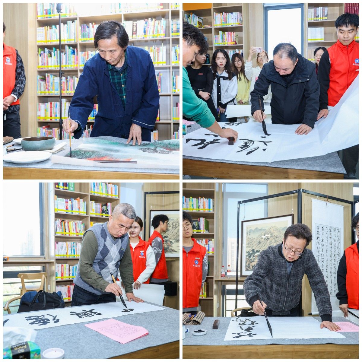 会后,文化艺术名家们来到图书馆职工书屋铺纸蘸墨,尽情展示精湛的书画技艺,笔到之处或苍劲有力,或厚重敦实,或飘逸灵动,或温和圆润,一幅幅书画作品引得在场师生驻足许久,赞叹喝彩。与此同时,一场文学沙龙在图书馆第二报告厅开展,向迅带来题为《童年生活经验对文学创作的影响》的精彩报告,分享了自己对文学的一些基本看法以及文学创作的方法与心得。书法、绘画、文学“好戏连台”,让师生们享受了一场高雅的美学盛宴,感受到文都南京的独特魅力。