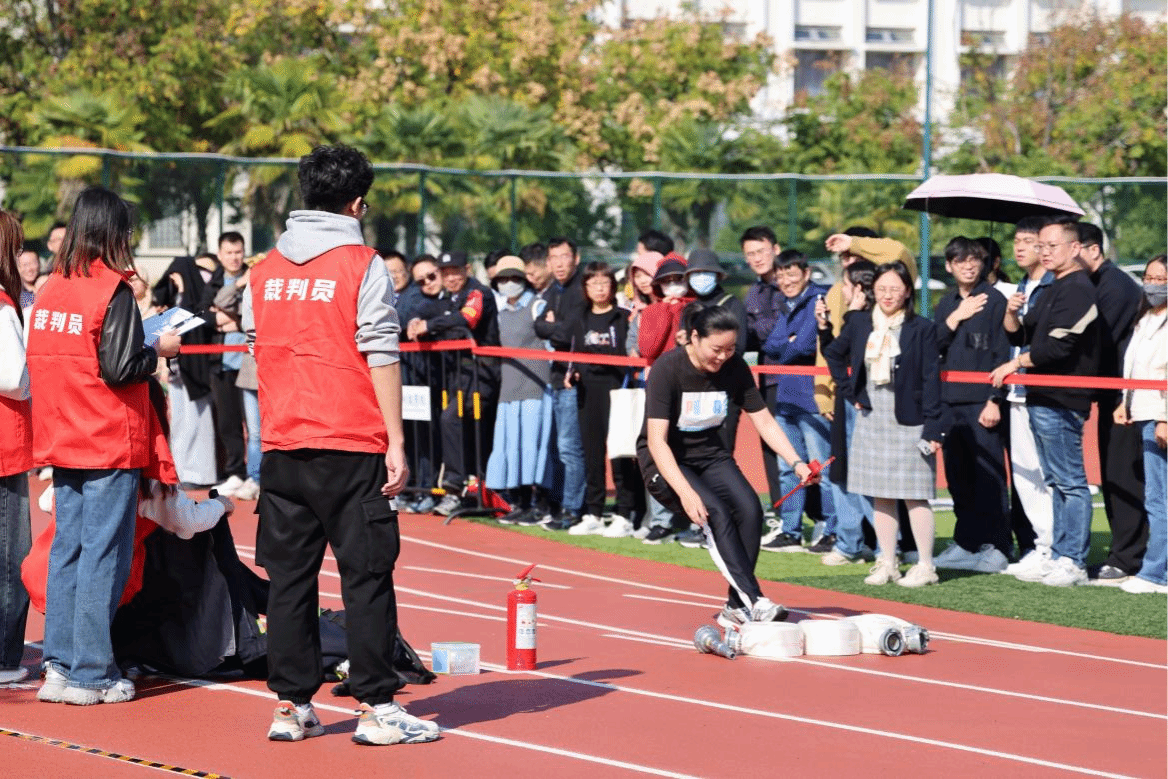 为认真贯彻“预防为主、防消结合”的消防工作方针,严格落实消防安全主体责任,加强消防安全宣传教育,树牢消防安全意识,提升校园消防安全管理能力,从严从紧从实抓好消防安全各项工作,不断巩固高质量平安校园建设成果。10月30日,beat365在江宁校区南区体育场举办了第三届“安康杯”教职工消防趣味运动会。
