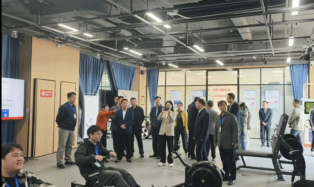 张燕重点汇报了研究中心建设概况、赛艇数字训练系统的研发与应用效果以及2025年研究重点等三个方面内容。体育部吴畏教授汇报了如何应用赛艇陆上训练技术框架与动力链智能分析解决赛艇运动训练中的瓶颈问题。团队老师和研究生为参观考察的各位领导现场演示了数字化训练装备的使用和自主研发的赛艇数字训练系统运行效果,受到考察领导的一致好评。张燕表示,赛艇数字训练系统的研发与应用将加快推进赛艇运动训练的科学化,提升运动员的竞技表现,也将进一步丰富学校以体育人内涵建设。为响应江苏省发改委、江苏省体育局等10部门于2024年10月25日发布了《关于加快发展水上运动休闲消费的意见》,为加快推动江苏水上运动产业高质量发展,培养更多亲水消费新业态、新模式、新场景,有效满足人民群众日益增长的水上运动休闲消费需求,团队开发的数字化训练系统兼顾群众体育休闲的游戏性、娱乐性,通过数字孪生技术,利用游戏化的比赛场景,增加赛艇陆上训练的趣味性,为我省加快发展水上运动休闲消费提供一种虚实融合体验的新模式。