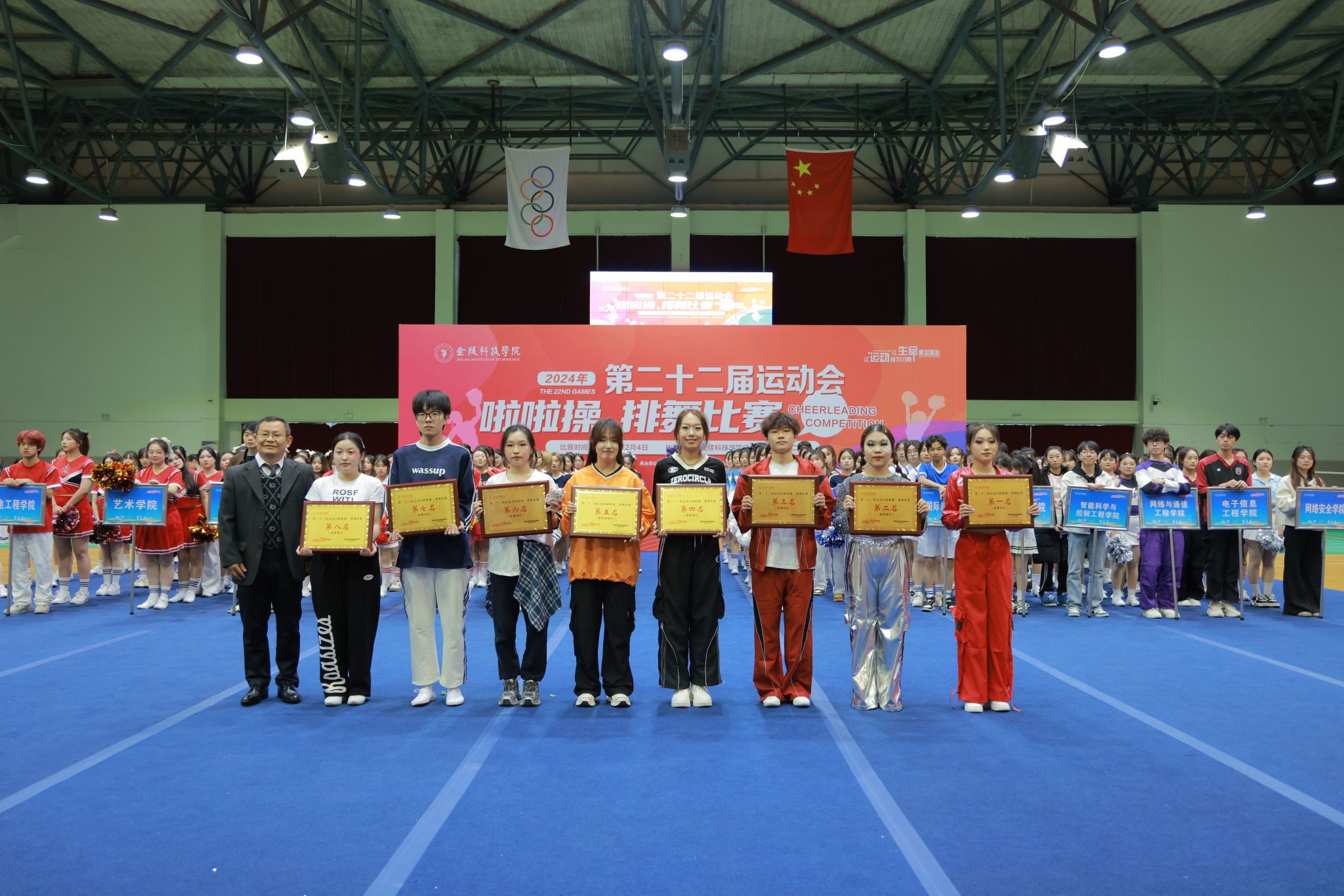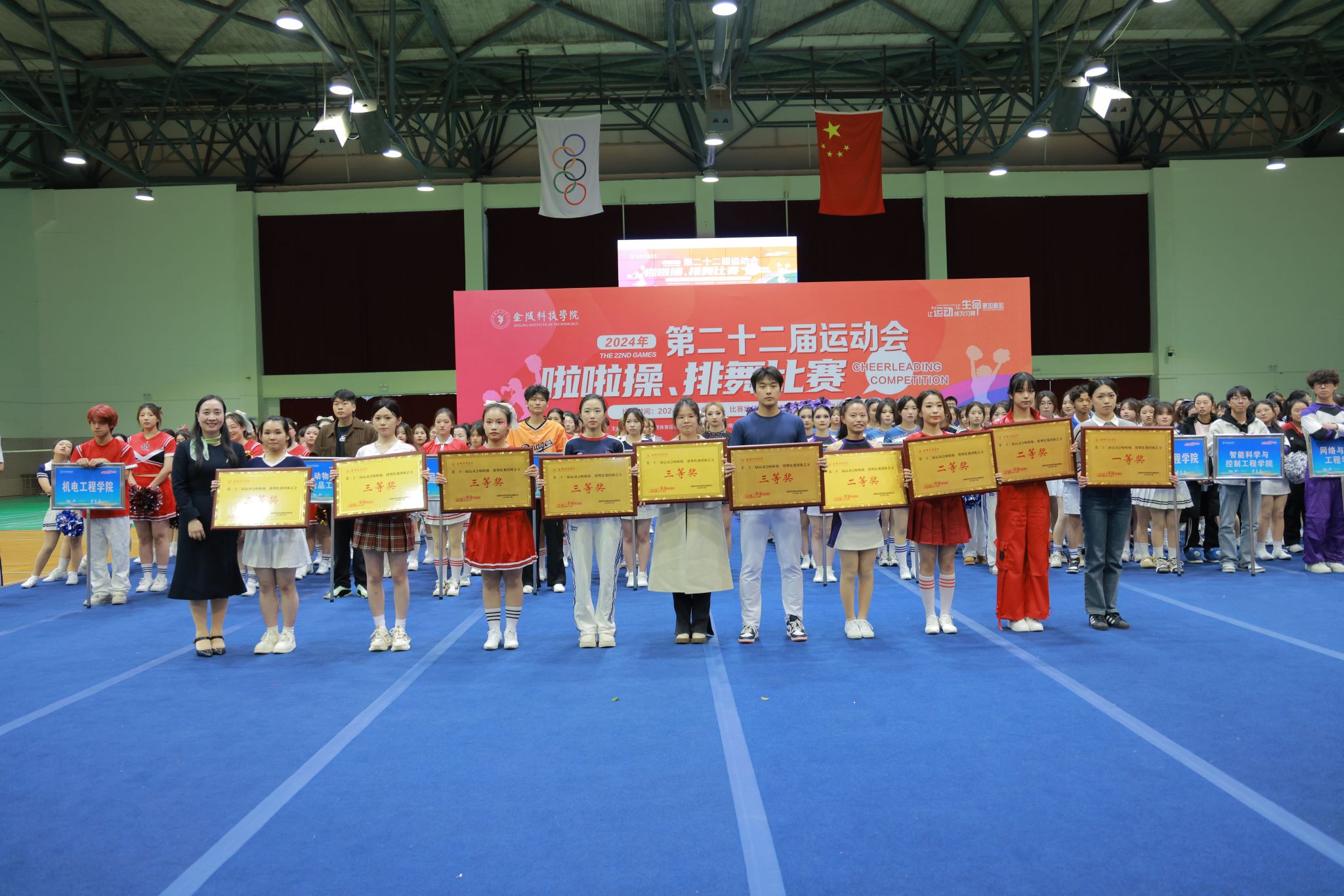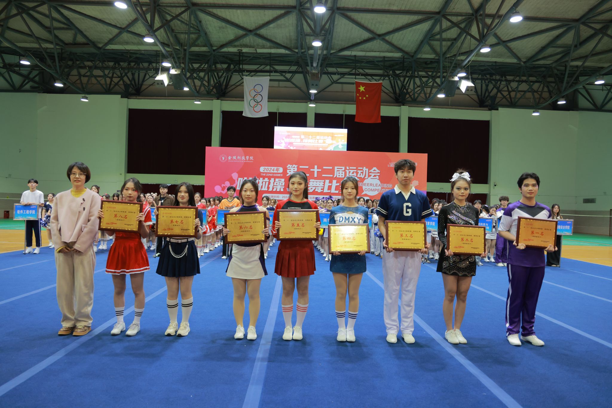 学生工作处副处王姝为啦啦操项目获奖运动员颁奖