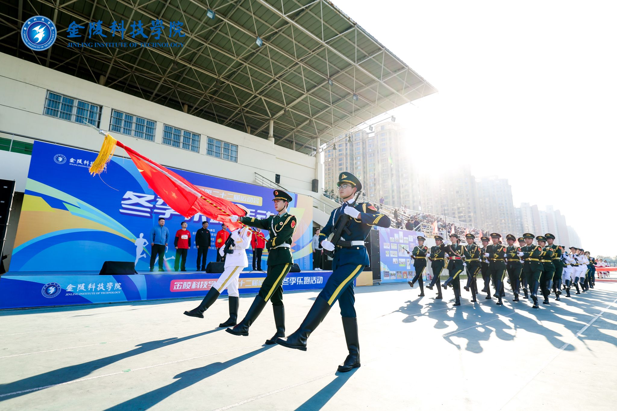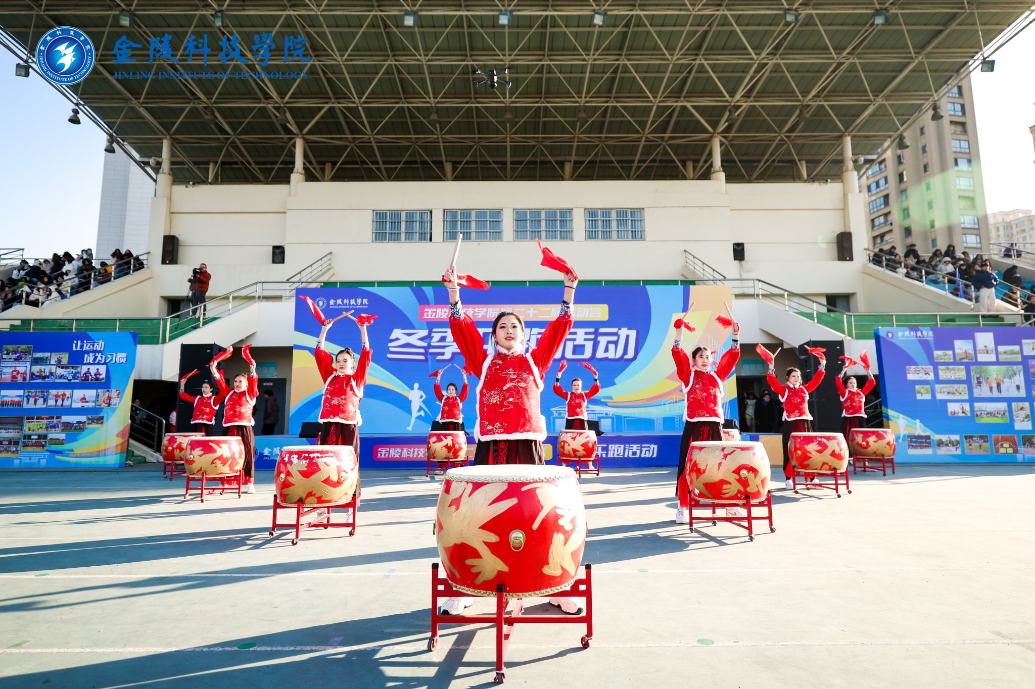 活动在商学院鼓队的激情表演中拉开序幕。鼓点激昂、气势恢宏,金科学子的青春力量展示得淋漓尽致。力量、技巧、美感……校啦啦操队活力四射、表现亮眼,用青春的火焰点燃了整个赛场,赢得了阵阵喝彩与掌声。舞龙队的矫健身影出现在操场上,动物科学与食品工程学院的学子们精心编排。国旗班迈着铿锵有力的步伐走过,身姿挺拔、目光坚毅,团结、向上、奋进一直都是金科人的态度。