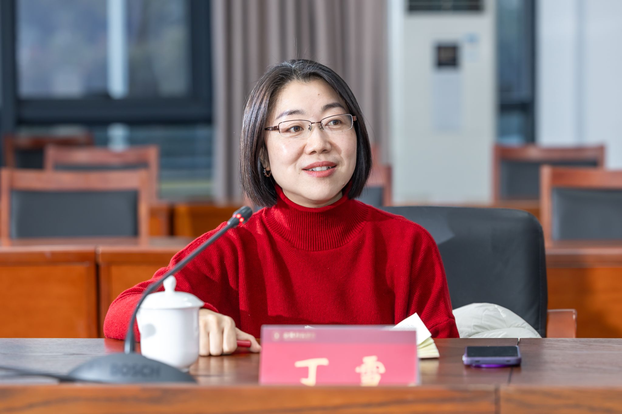 顾晓燕代表学校对丁雪一行的到来表示欢迎,并感谢南京市人社局长期以来对学校的关心支持。她简要介绍了学校近年来高质量发展取得的显著成绩和毕业生就业总体情况。她表示,学校将会持续做好毕业生就业服务工作,努力提高毕业生留宁率,积极为南京区域经济发展贡献金科力量。