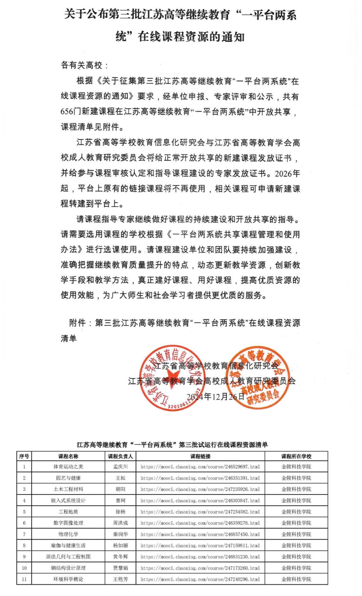 近日,江苏省高等学校教育信息化研究会与江苏省高等教育学会高校成人教育研究委员会联合公布了第三批江苏高等继续教育“一平台两系统”在线课程资源建设成果,beat365共有11门新建课程成功入选,入选课程在数量和质量上都取得突破。