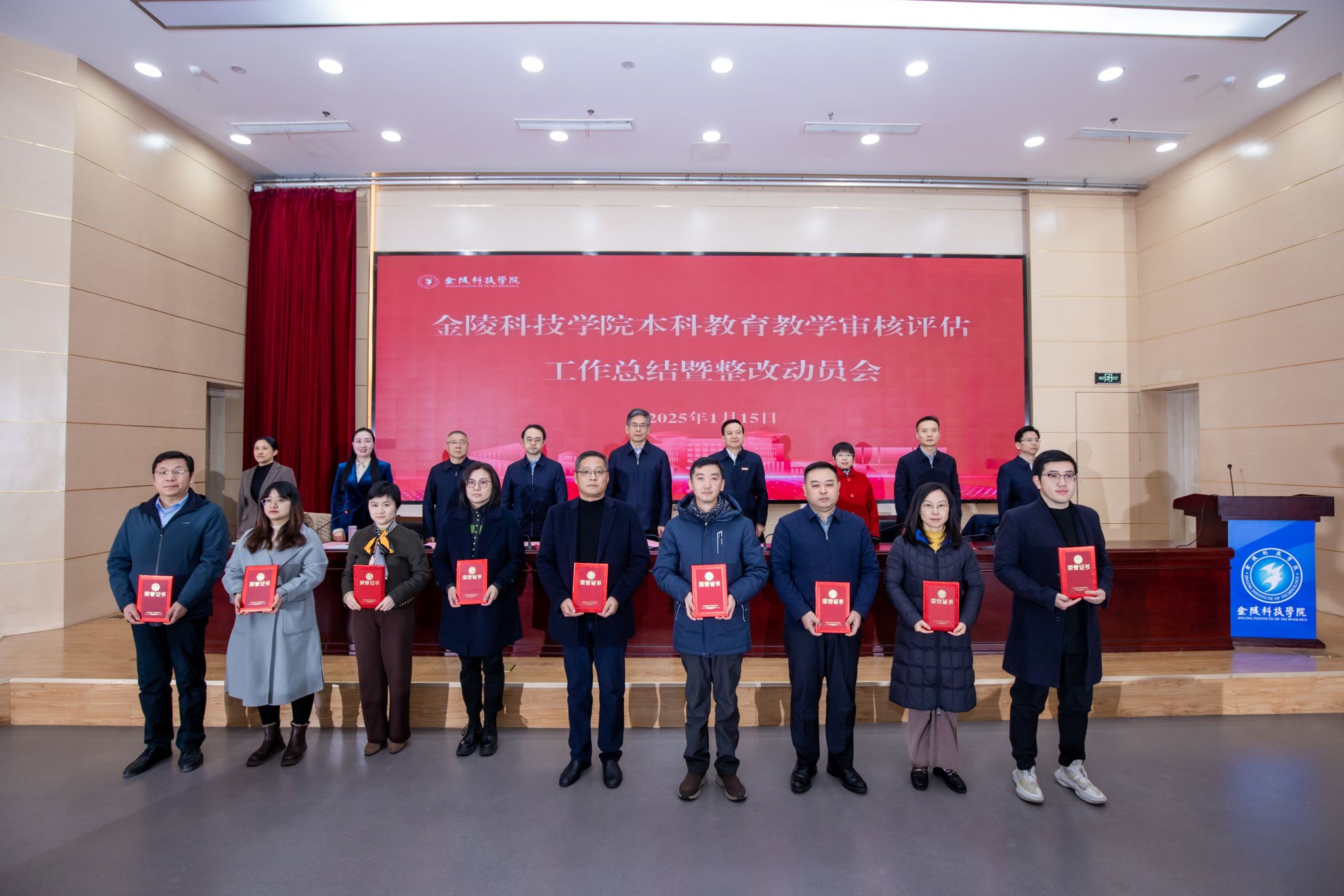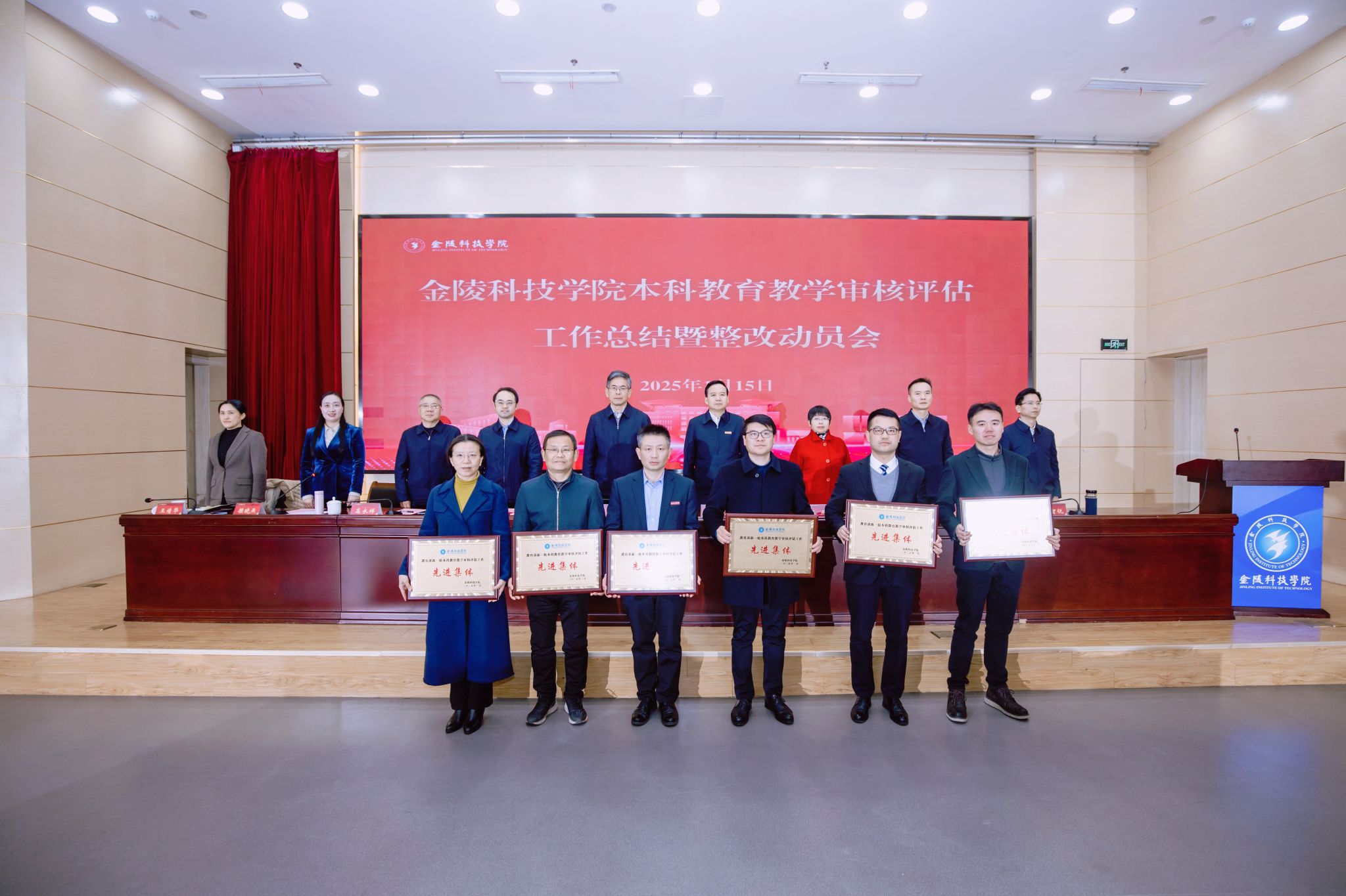 1月15日上午,beat365在科技楼报告厅召开教育部新一轮本科教育教学审核评估工作总结暨整改动员会。校党委书记刘志远、校长刘永彪出席会议并讲话。校党委副书记单晓峰宣读了审核评估工作先进集体和先进个人名单。全体校领导、全体中层干部、获表彰先进集体和先进个人代表、教师代表、校评建办工作人员等150余人参加会议。会议由副校长顾晓燕主持。
