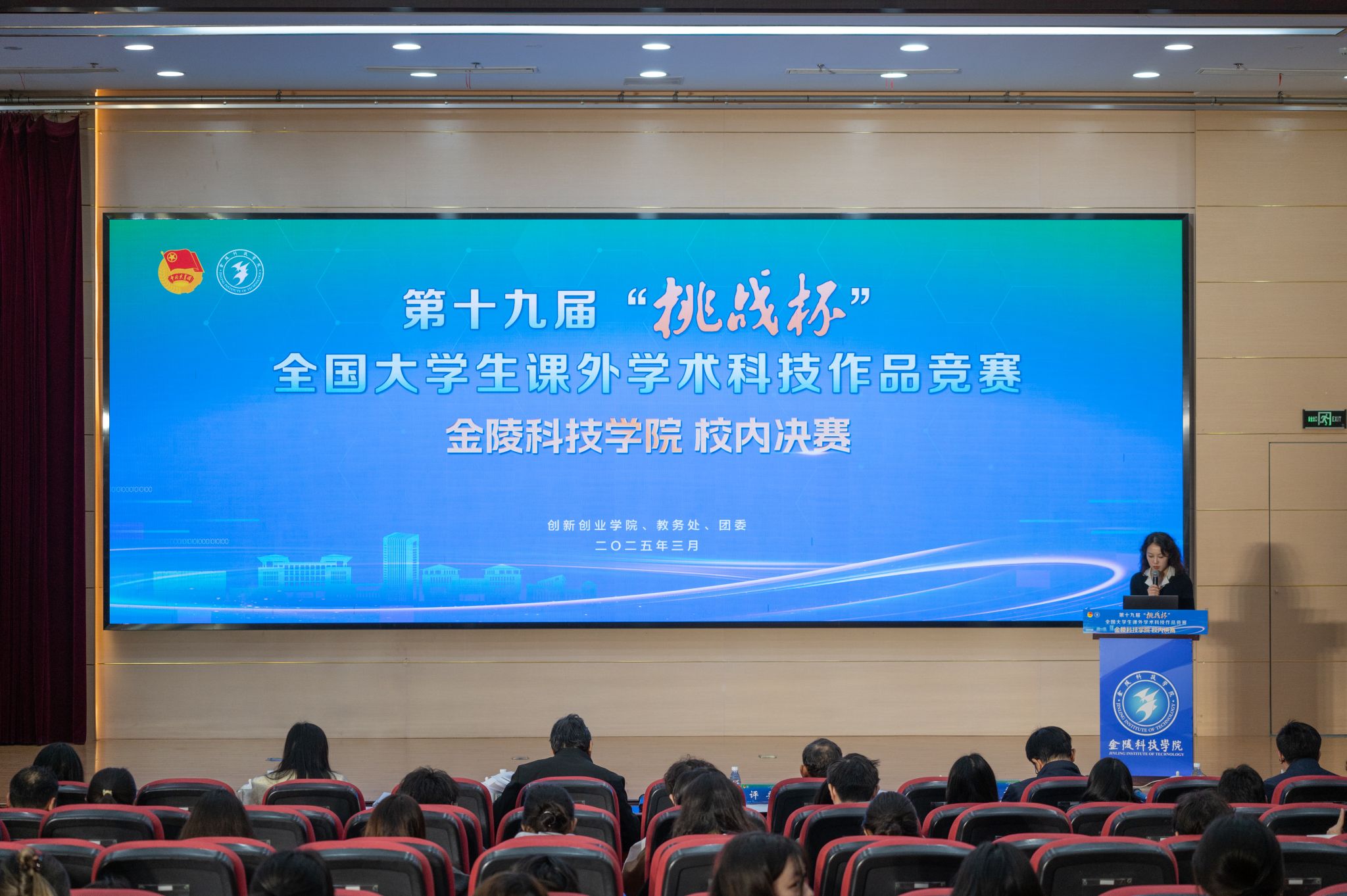 3月12日,第十九届“挑战杯”全国大学生课外学术科技作品竞赛beat365正版唯一官网必一校内决赛在江宁校区科技楼报告厅举行。本次比赛由创新创业学院、教务处、校团委联合主办,邀请知名企业家、创投机构负责人及学术专家担任评委。校党委副书记单晓峰、相关部门负责人、项目指导教师及学生代表共300余人参加活动。