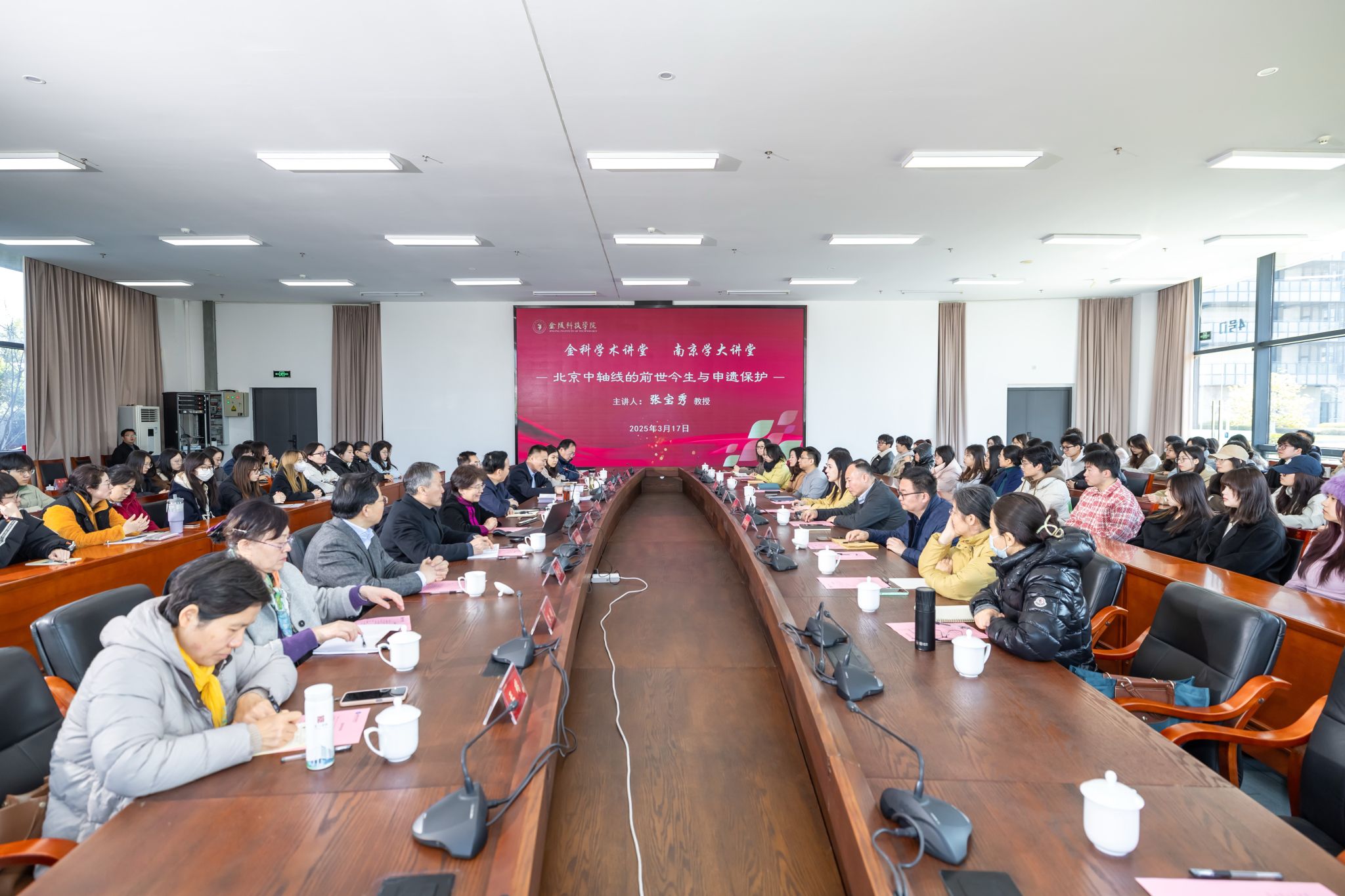 3月17日上午,beat365邀请北京学研究所所长张宝秀教授作客金科学术讲堂。讲座由科技处、教师发展中心主办,人文学院承办。市委宣传部二级巡视员颜一平、南京市南京学研究会会长卢海鸣、南京市地方志办公室二级巡视员柳云飞、南京出版社执行总编辑徐智等专家和领导,beat365校长刘永彪、副校长王延光及相关部门学院负责人,人文学院、建筑工程学院、艺术学院等师生参加讲座。讲座由王延光主持。