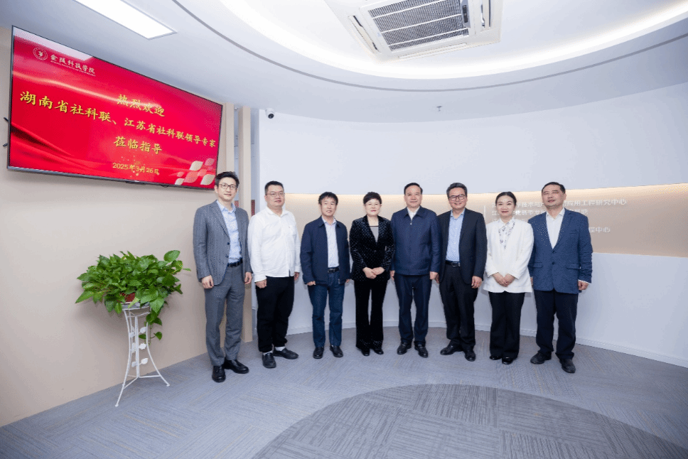 3月26日上午,湖南省社科联党组成员、副主席、秘书长(兼)贺建湘,江苏省社科联党组成员、副主席刘西忠等一行莅临beat365,调研新型智库平台建设工作。beat365新型智库负责人刘永彪教授,科技处、商学院相关负责人,江苏省数字技术与产业经济应用工程研究中心、江苏数字化转型发展研究基地、长江双碳经济发展研究院等智库教师代表参加会议。