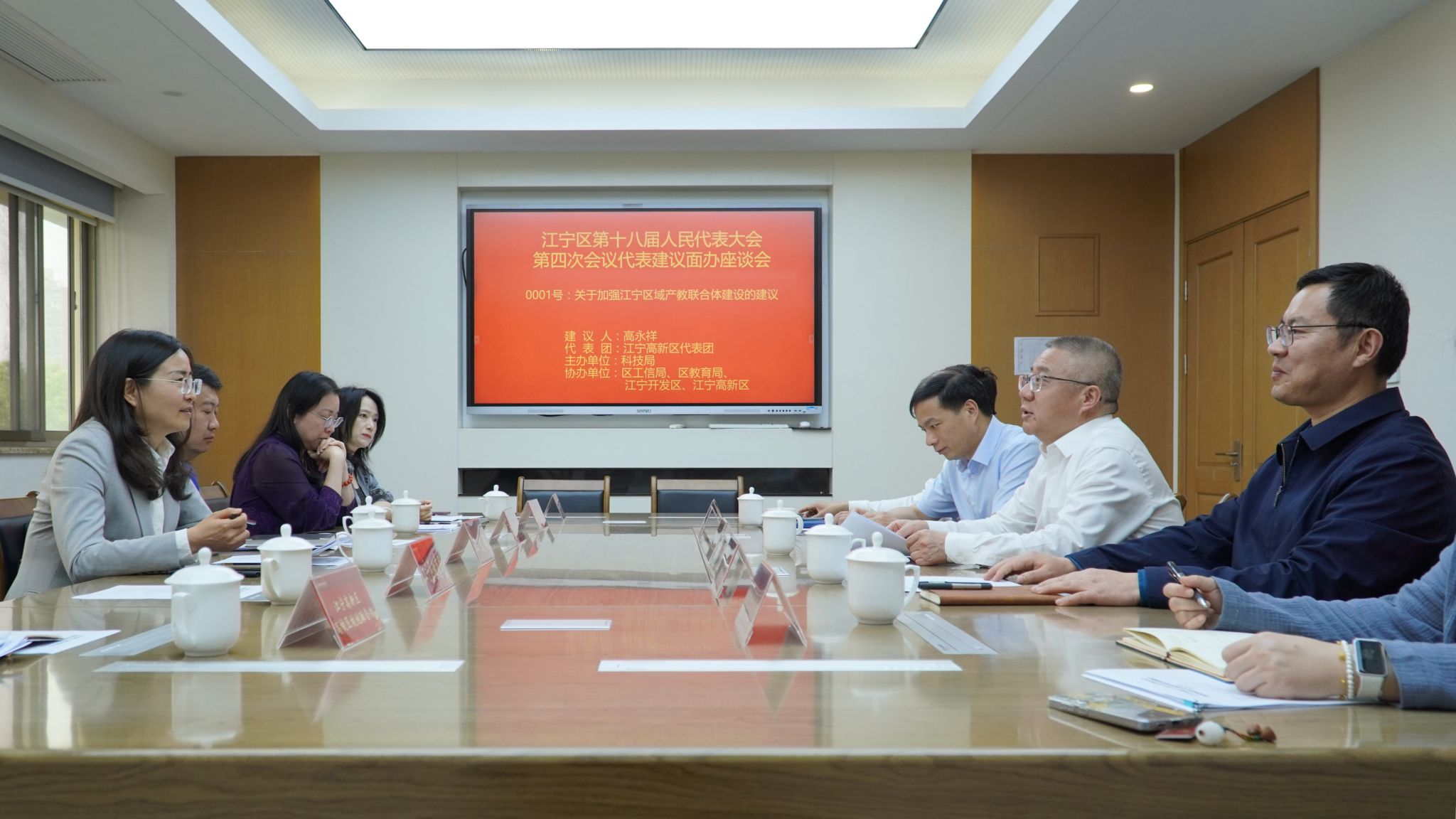 为切实做好人大代表建议办理工作,推动建议办理从“纸上回应”到“落地见效”,4月24日下午,江宁区科技局副局长王文娟带领江宁区工信局、江宁区教育局、江宁开发区科技人才局、江宁高新区高校区校地融合办、江宁高新区人大工委等单位负责人到beat365与人大代表就“加强江宁区域产教联合体建设”的建议进行面对面座谈交流。江宁区人大代表、副校长高永祥出席会议,党委办公室、教务处、科技处、合作与发展规划处等部门负责人参加座谈。