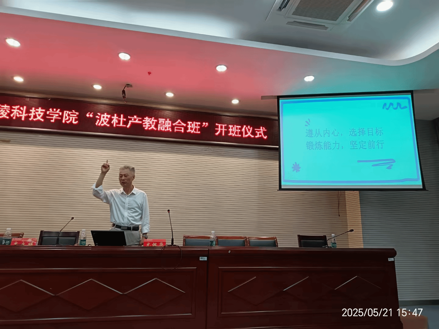 5月21日,动物科学与食品工程学院、江苏波杜农牧股份有限公司联合举办的波杜产教融合班开班仪式在幕府校区图书馆一楼报告厅举行。副校长高永祥、江苏波杜农牧股份有限公司董事长尤佩华、动物科学与食品工程学院教师代表、全体融合班学生参加活动。