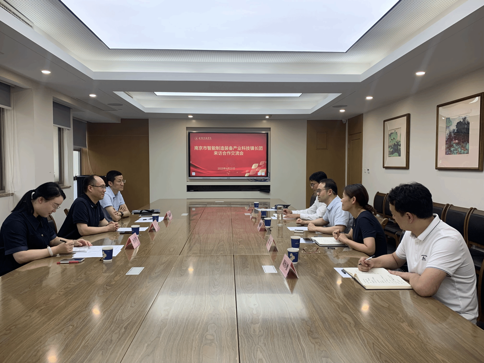 6月20日,浦口区副区长、科技镇长团团长方正,区委组织部副部长张志伟一行来校开展回访交流。校党委副书记单晓峰及党委组织部、机电工程学院主要负责人参加座谈会。