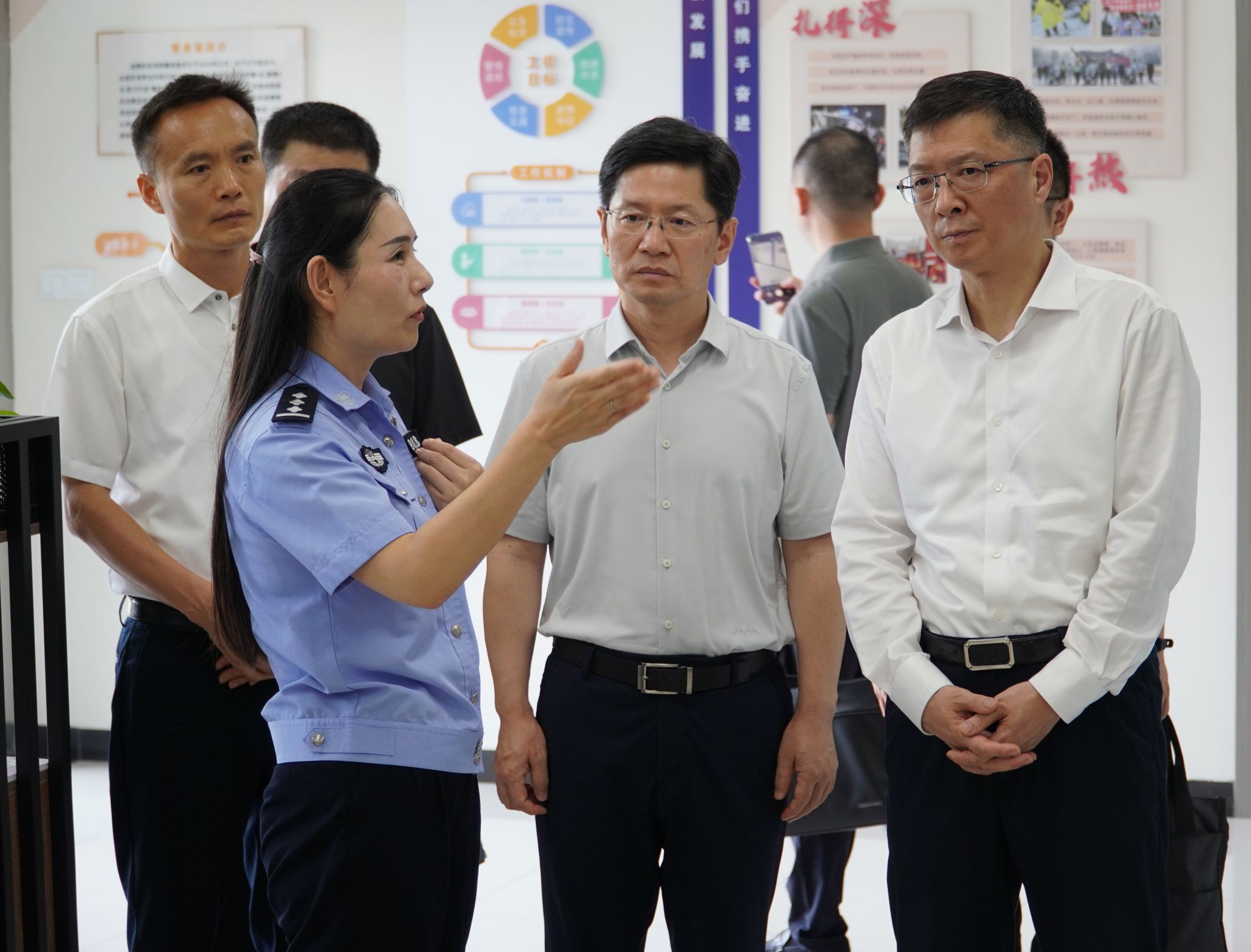8月5日,无锡市政法委副书记邹立群一行来beat365调研。江宁区委常委、政法委书记庞志贵,副校长王延光等参加调研。