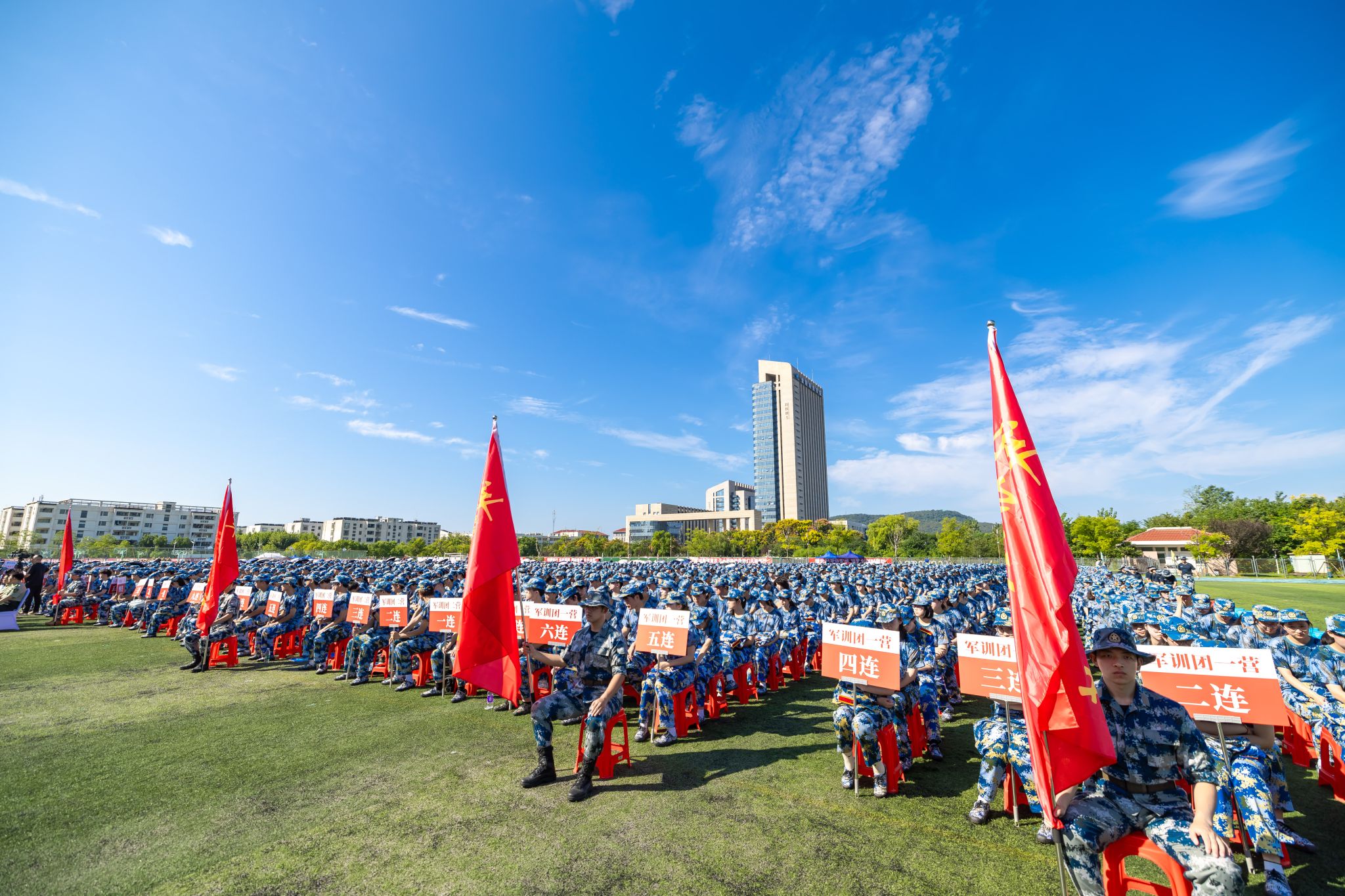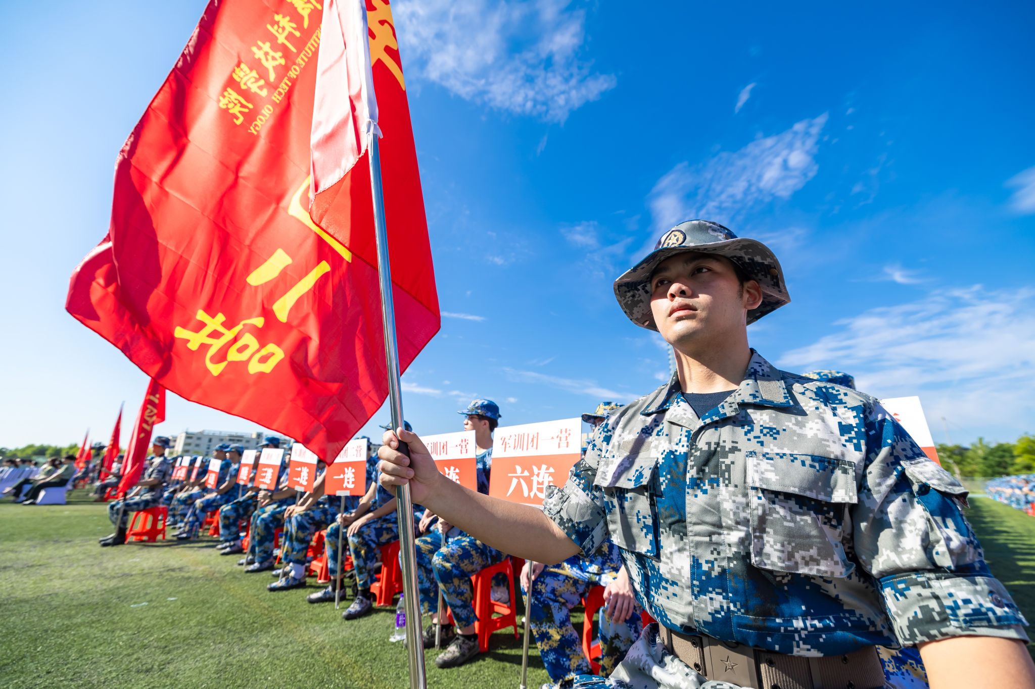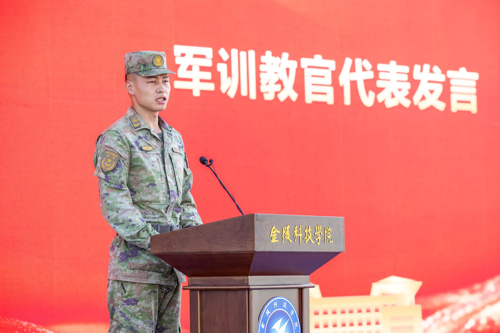 党委办公室、党委组织部、党委宣传部、教务处、党委学生工作部、党委保卫部、团委等部门负责人,各学院学生工作负责人,新生辅导员,承训部队教官及2025级全体受训新生参加活动。