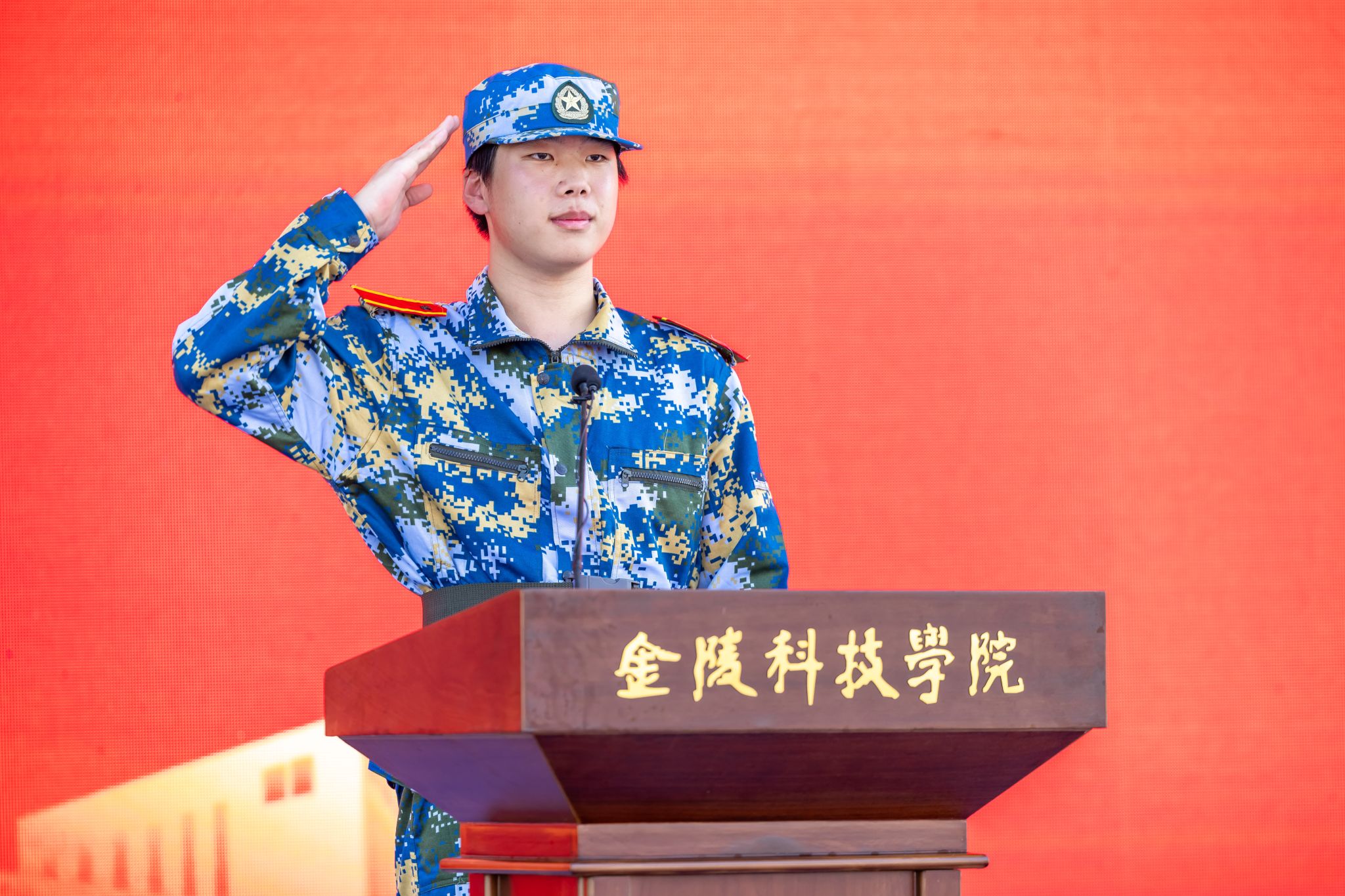 刘志远以《以国防铸魂 以校史铸志 以奋斗铸青春》为题为新生上“开学第一课”,他从纪念中国人民抗日战争暨世界反法西斯战争胜利80周年阅兵式谈到对国家发展的思考感悟,从电影《南京照相馆》谈到南京的城市记忆,从金科校史传承谈到个人时代担当,并对同学们提出三点期许:一是要“知史明责”,从历史深处读懂“家国大义”。希望同学们从国家的历史中汲取中华民族坚韧不屈的精神,将个人发展融入国家复兴大业之中;从南京的历史中读懂不屈与抗争,铭记这座城市承载的厚重记忆,传承英雄城市的红色基因;从校史中感悟学校发展脉络,找到前行“方位”和“航向”。二是要“笃行实干”,以专业所长扛起“时代担当”。希望同学们少一些“躺平”的抱怨,多一些“奋斗”的行动,少一些“功利”的计较,多一些“实干”的追求,在实验室里潜心攻关,在企业实习中积累经验,在志愿服务中增长见识,让自己的专业所长成为服务家国的“硬本领”。三是要“立心铸魂”,以军训为起点涵养“精神品格”。希望同学们在军训的严格纪律中学会自律与坚持;在集体协作中懂得团结与互助,让军训的每一滴汗水都化作滋养精神品格的养分。在未来的日子里,无论面对何种挑战,都能以坚韧不拔的意志、积极向上的态度去应对,真正成为有理想、有道德、有文化、有纪律的新时代青年。