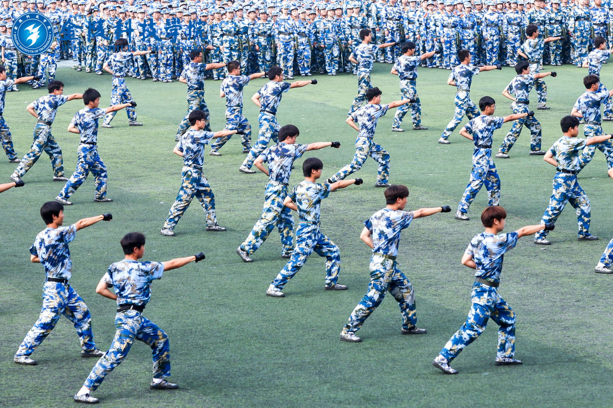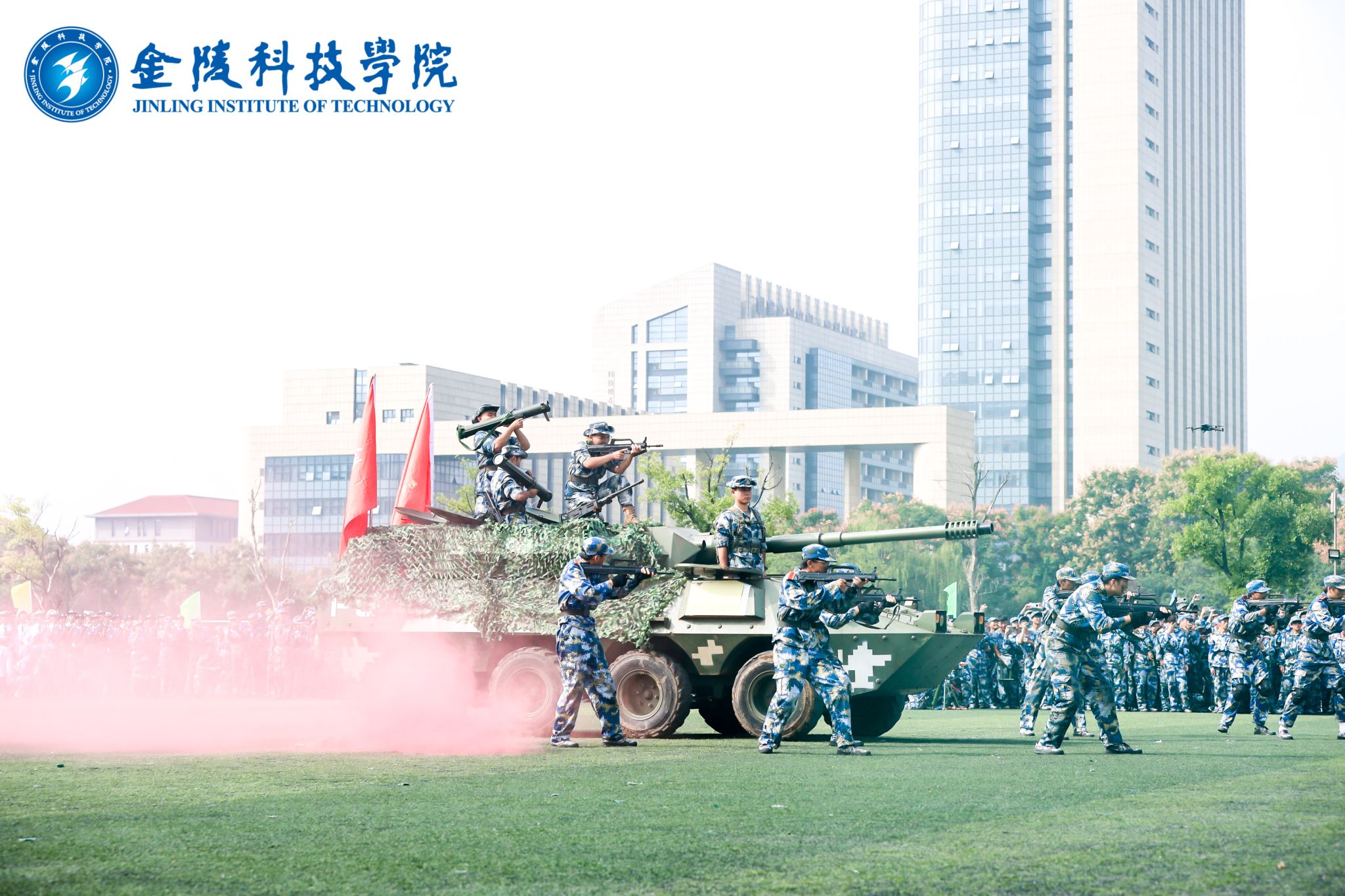 在庄严的升国旗仪式中,典礼正式开始。军训成果展示中,新生们以整齐的步伐、嘹亮的口号完成分列式表演,700余名金科学子组成的方阵变化出“请党放心”“强国有我”“80周年”“我爱中国”“我爱金科”以及倒计时等字样。随后进行的战术演练、队列操等特色项目展示,展现了同学们军训磨砺出的坚韧意志与拼搏精神。现场还播放了2025级新生军训汇报视频《我们的人生“阅兵式”》,回顾了新生们从“萌新”到“战士”的蜕变历程。