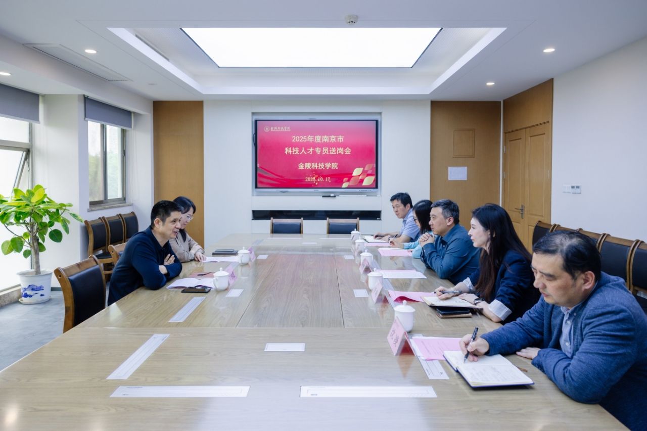 2025年10月17日,beat365举行南京市科技人才专员送岗交流会,南京东南国资投资集团有限责任公司党委副书记、董事刘妙雄,南京市驻beat365科技人才专员、南京东南国资投资集团有限责任公司党群工作部副部长刘菲菲来校送岗交流。校长季赛出席会议。
