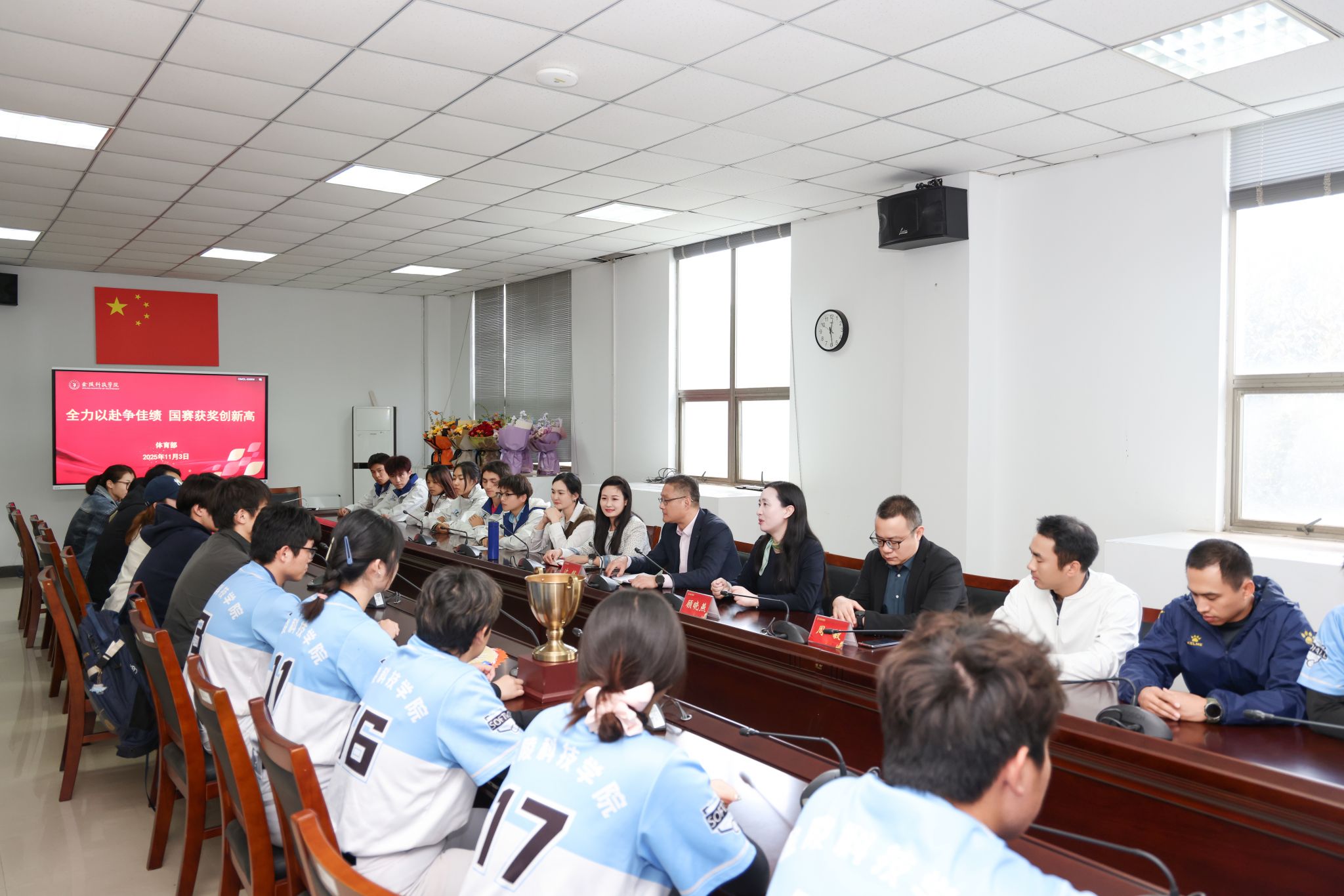 11月3日中午,副校长顾晓燕参加体育部举办的“全力以赴争佳绩,国赛获奖创新高”主题座谈会,慰问参加国赛载誉而归的运动员、教练员。体育部相关负责人以及棒垒球队、定向越野队、田径队的全体运动员、教练员参加会议。