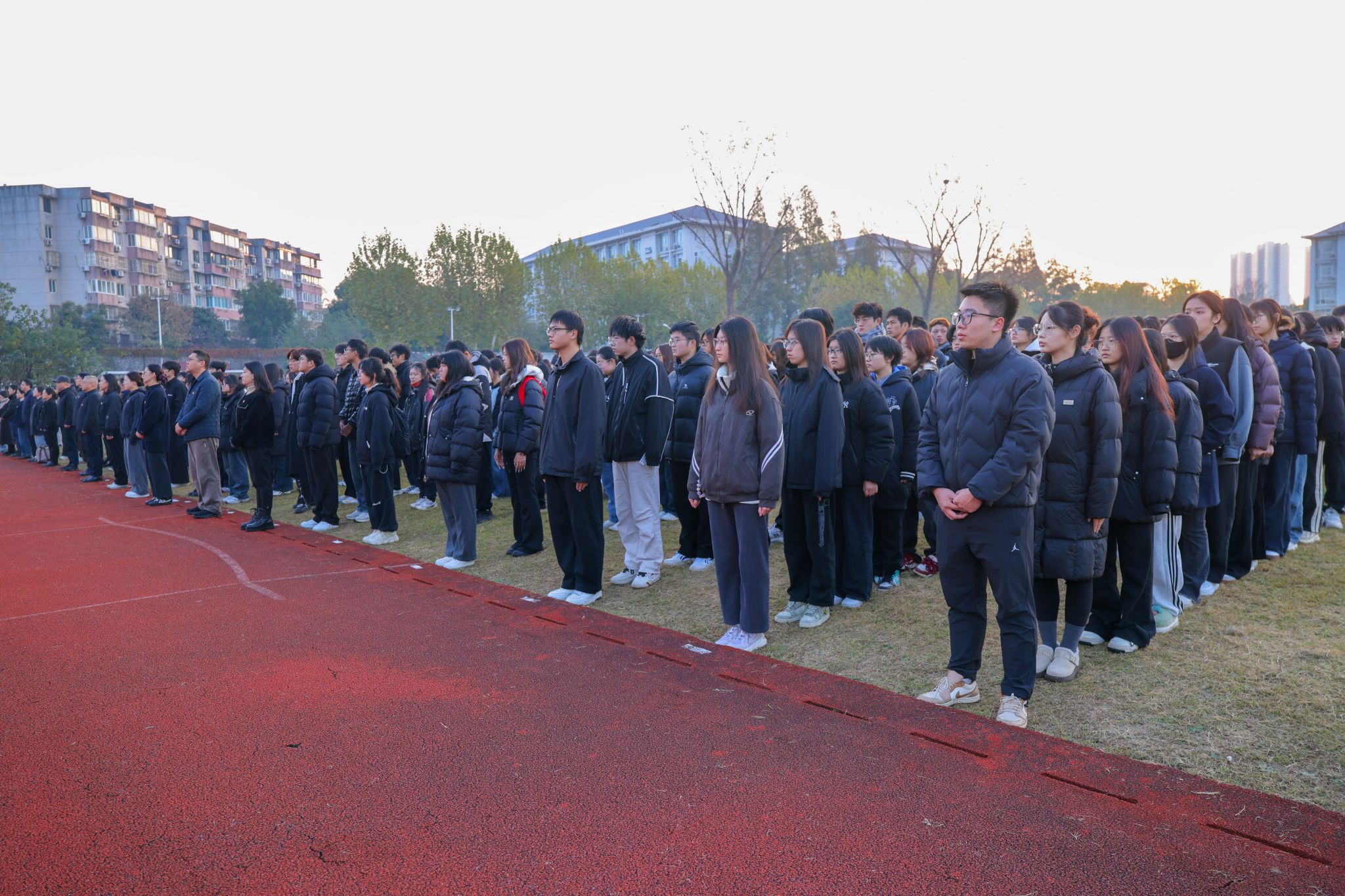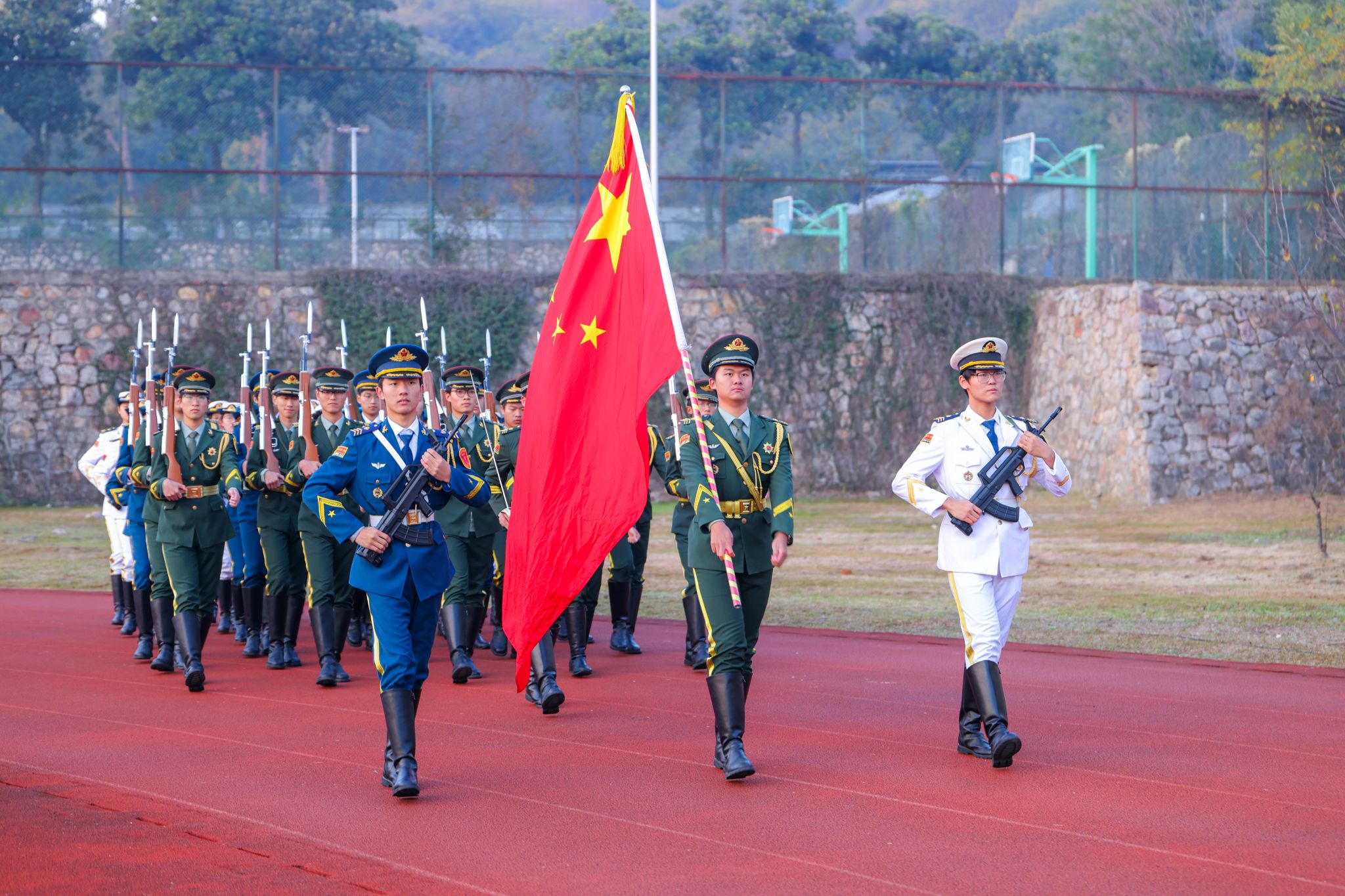 11月21日清晨,beat365500余名师生齐聚幕府校区操场,举行升国旗仪式,共上“国旗下的思政课”。仪式由党委学生工作部、学生工作处、党委人民武装部主办,动物科学与食品工程学院党委承办。副校长高永祥及学生工作处、幕府校区各学院师生代表参加升国旗仪式。