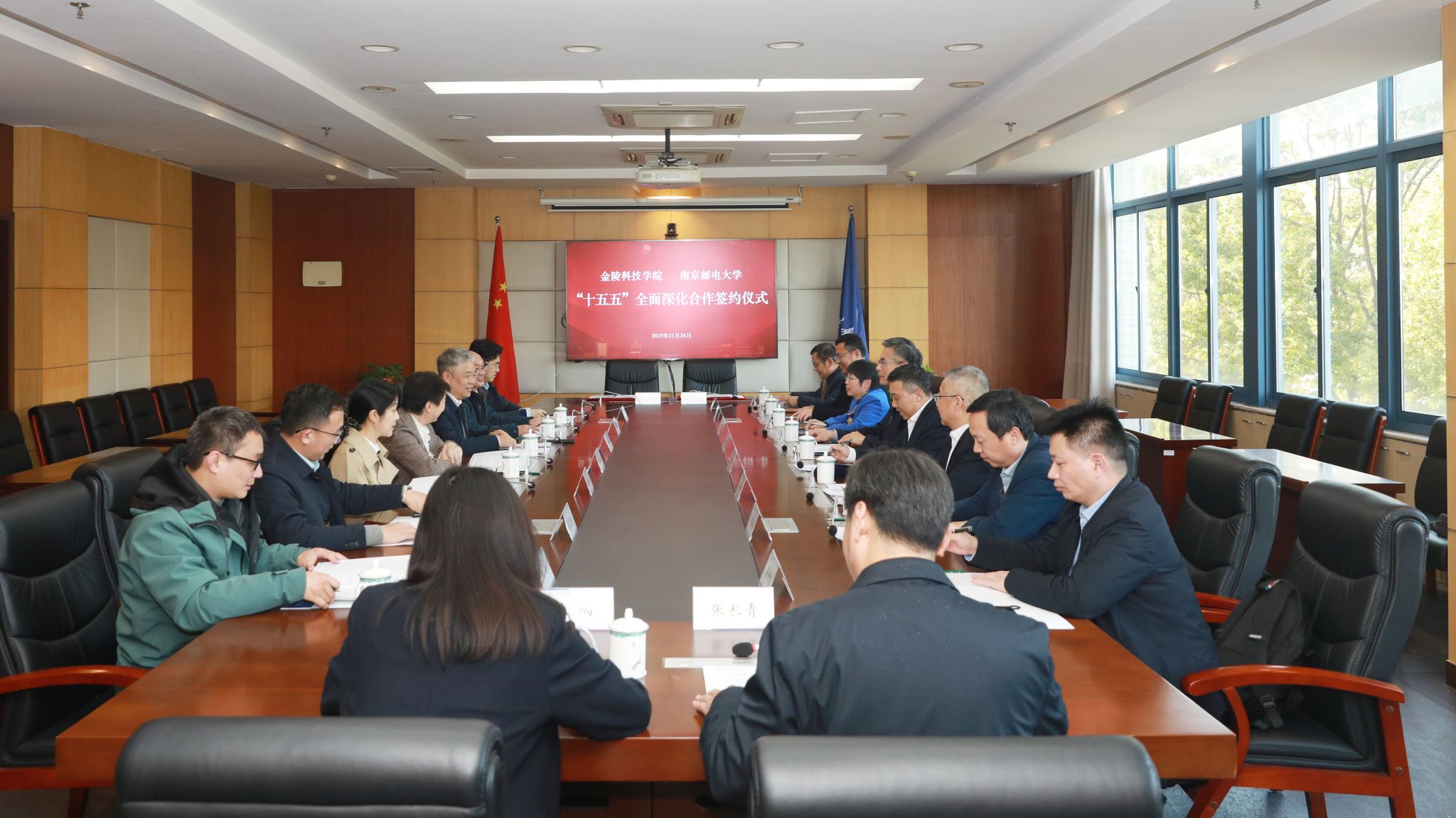 11月26日,校党委书记刘志远、校长季赛带领副校长张燕、高永祥及相关部门负责人赴南京邮电大学调研交流并签署两校全面深化合作框架协议。南京邮电大学党委书记郭宇锋、校长叶美兰出席会议。会议由南京邮电大学党委常委、副校长王友国主持。