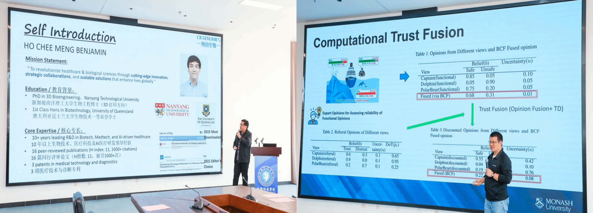 在学术报告环节,五位专家围绕可解释人工智能、单细胞智能测序平台、多模态学习不确定性建模、异常检测机制、环境智能等前沿方向,系统介绍了最新理论突破、模型构建及落地实践,为参会师生带来多视角、跨领域的学术启迪。现场交流氛围热烈,师生提问踊跃,研讨深入充分,展现出浓厚的学术思辨氛围。