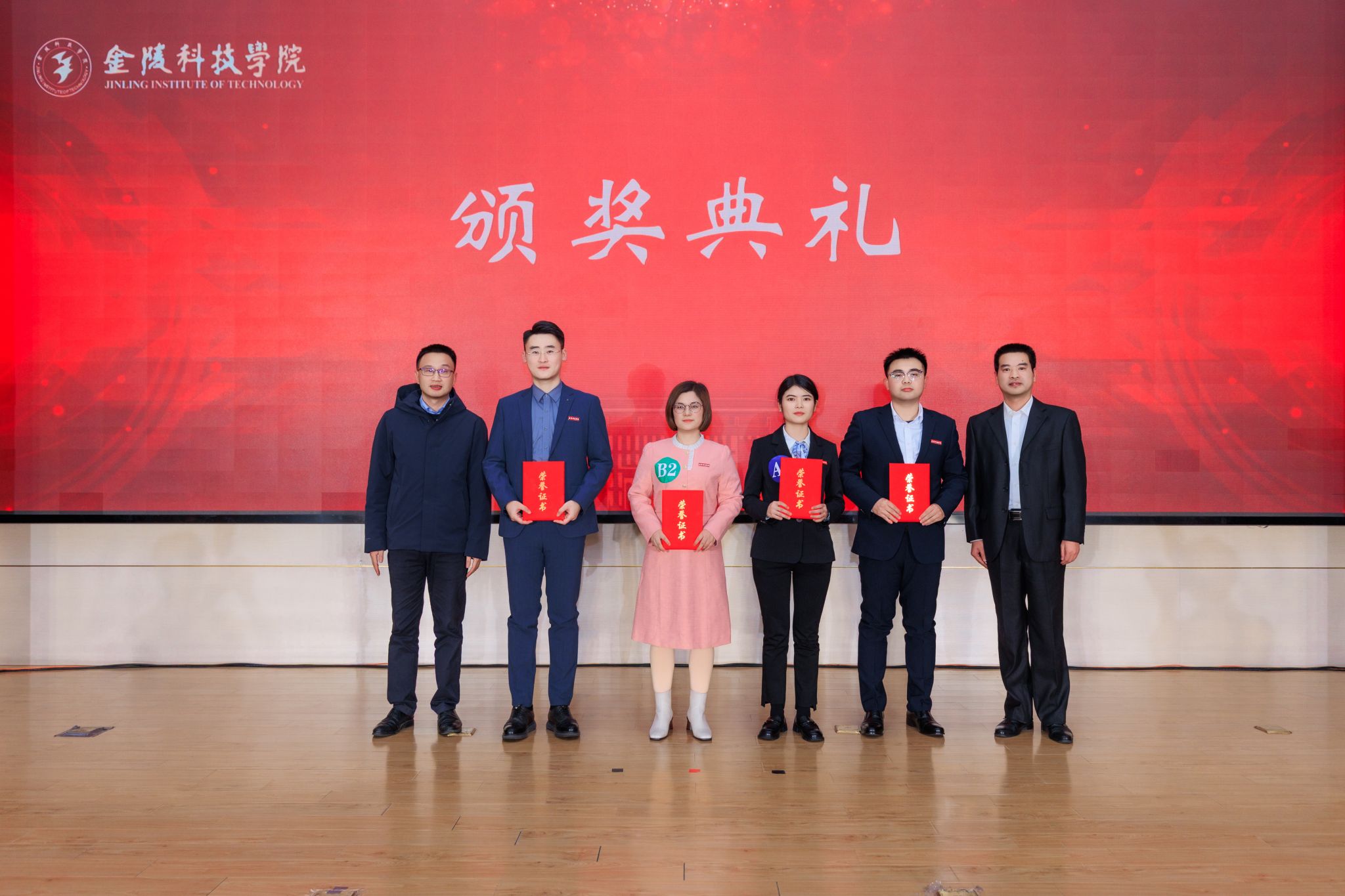 一等奖、二等奖、三等奖获得者与颁奖嘉宾合影