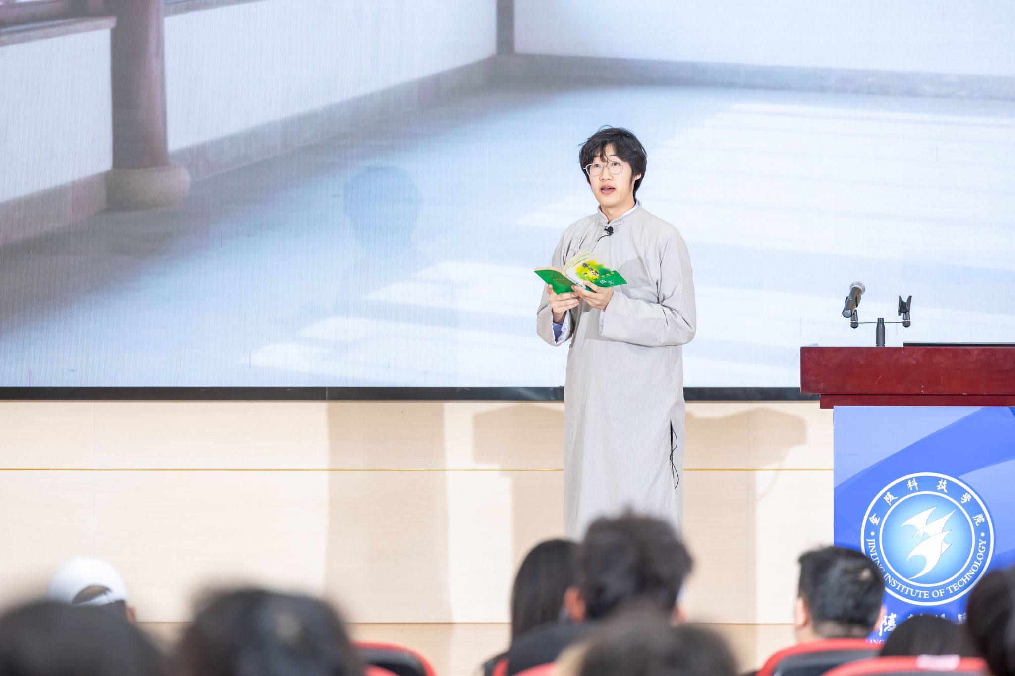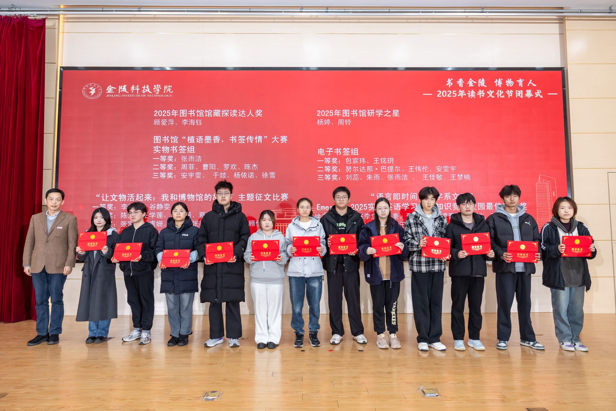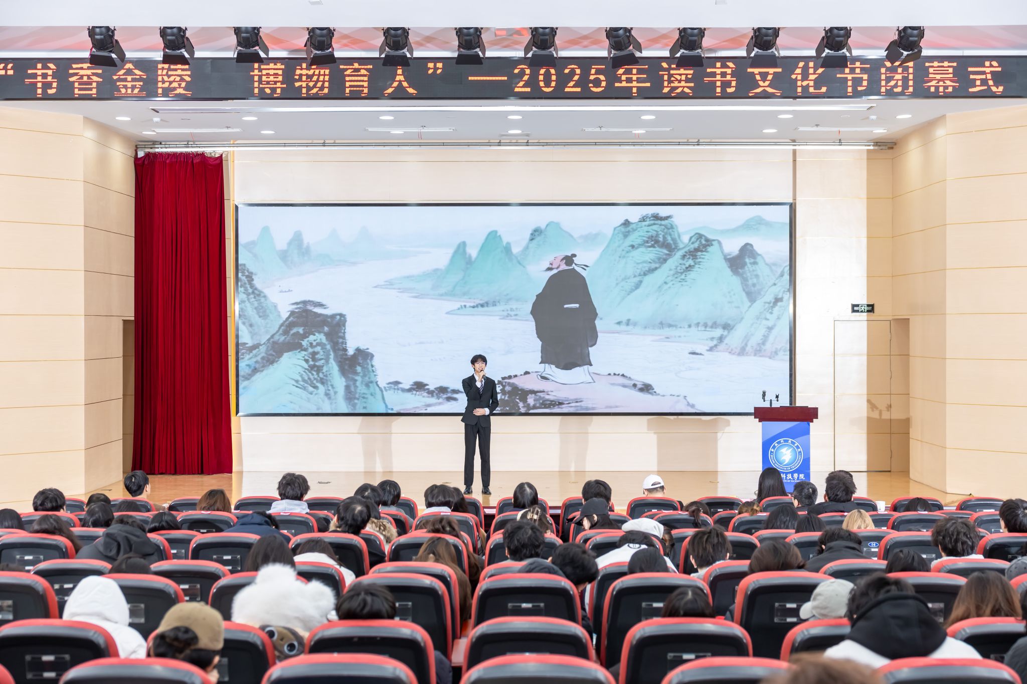 闭幕式在本次读书文化节回顾视频《金陵读城•文脉润心》中拉开序幕。视频以生动的画面串联起读书文化节期间的精彩瞬间,从图书馆里的静心研读,到博物馆中的驻足沉思,从分享会上的思想交锋,到赛事现场的创意迸发,全方位展现了金科学子与书香为伴、与文化同行的精神风貌,引发了在场师生的强烈共鸣。