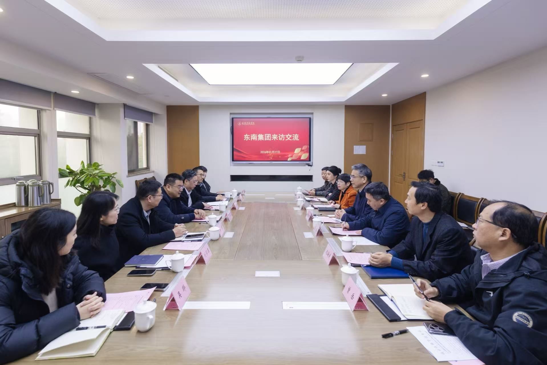 1月27日,东南集团党委书记、董事长井深一行来校考察交流。校党委书记刘志远、校长季赛出席交流座谈会。会议由副校长张燕主持。