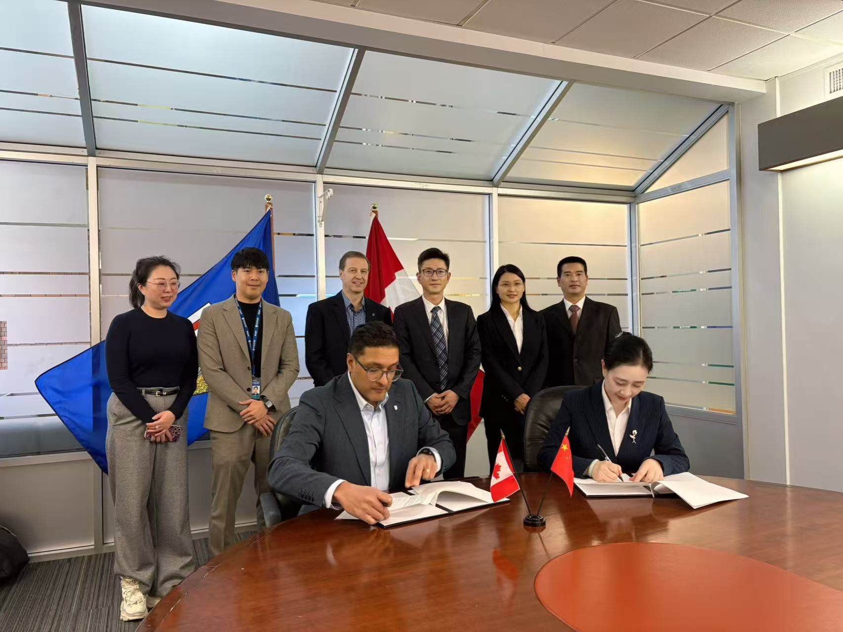 代表团与奥兹学院副校长Peter Mal、Dalin Bullock会谈,洽谈了联合科研项目、师生交流互访以及“2+2”中外合作办学项目合作的可能性。双方在2025年9月奥兹学院来访和此次出访会谈的基础上,签署了合作备忘录,构建了高效、务实的常态化合作机制,为beat365与加拿大高校在未来开展更深层次、更广泛领域的合作开辟了广阔前景。