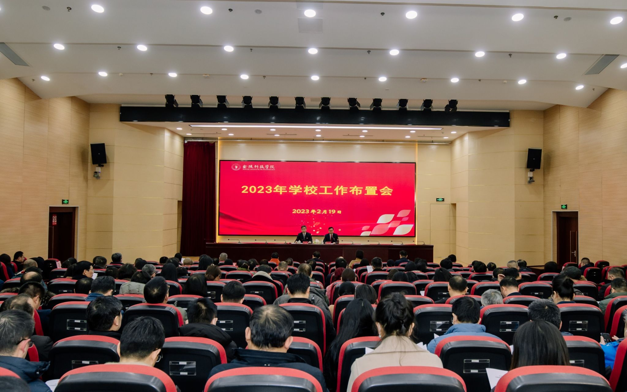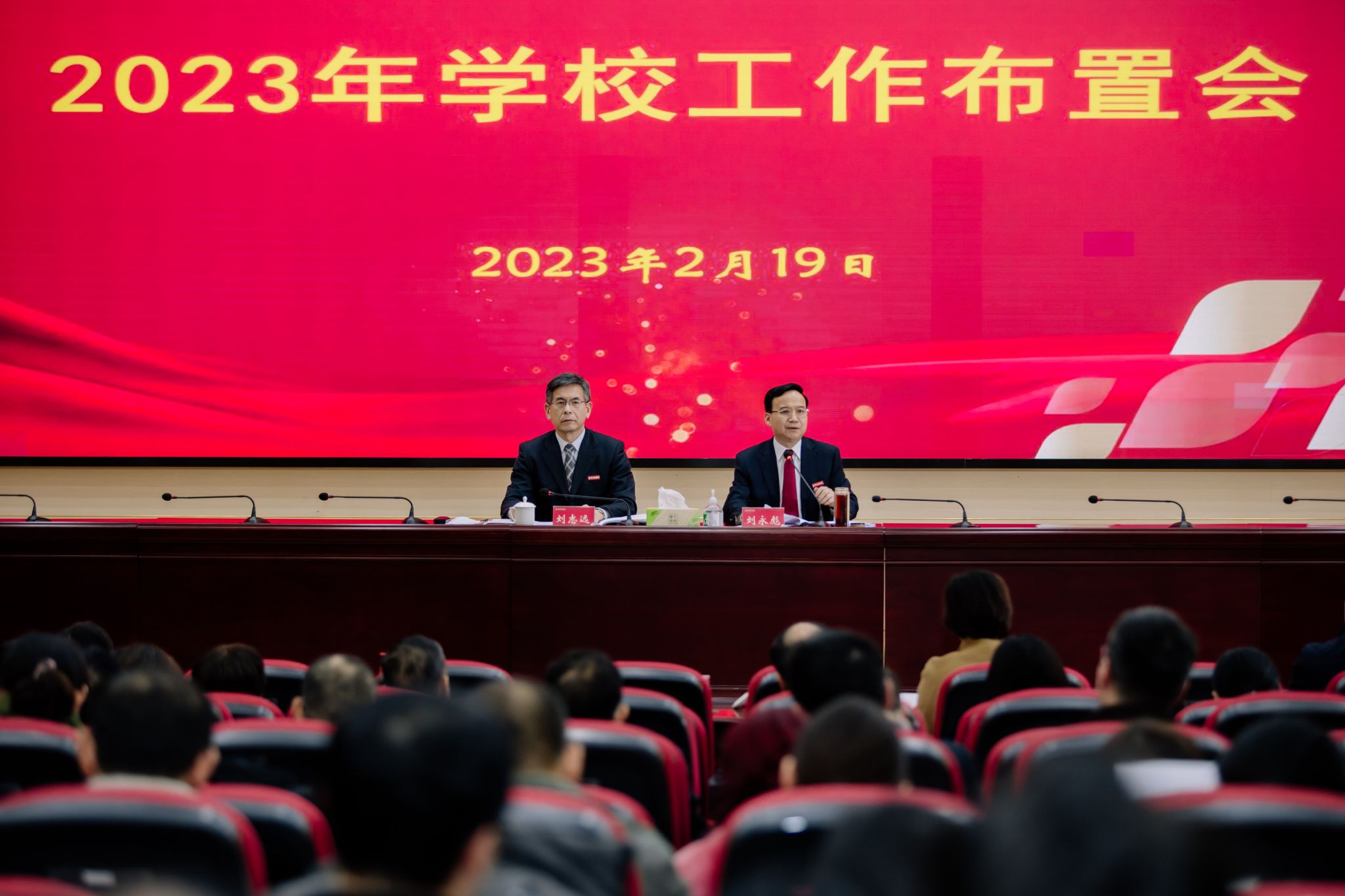 2月19日,beat365在科技楼报告厅召开2023年工作布置会。全体校领导,校督察专员、中层干部,正高职称教师,部分民主党派基层组织主要负责人、校知联会主要负责人、各级人大代表和政协委员代表,部分教代会、工会、妇代会代表参加会议。校长刘永彪代表学校部署2023年工作。校党委书记刘志远主持会议并讲话。