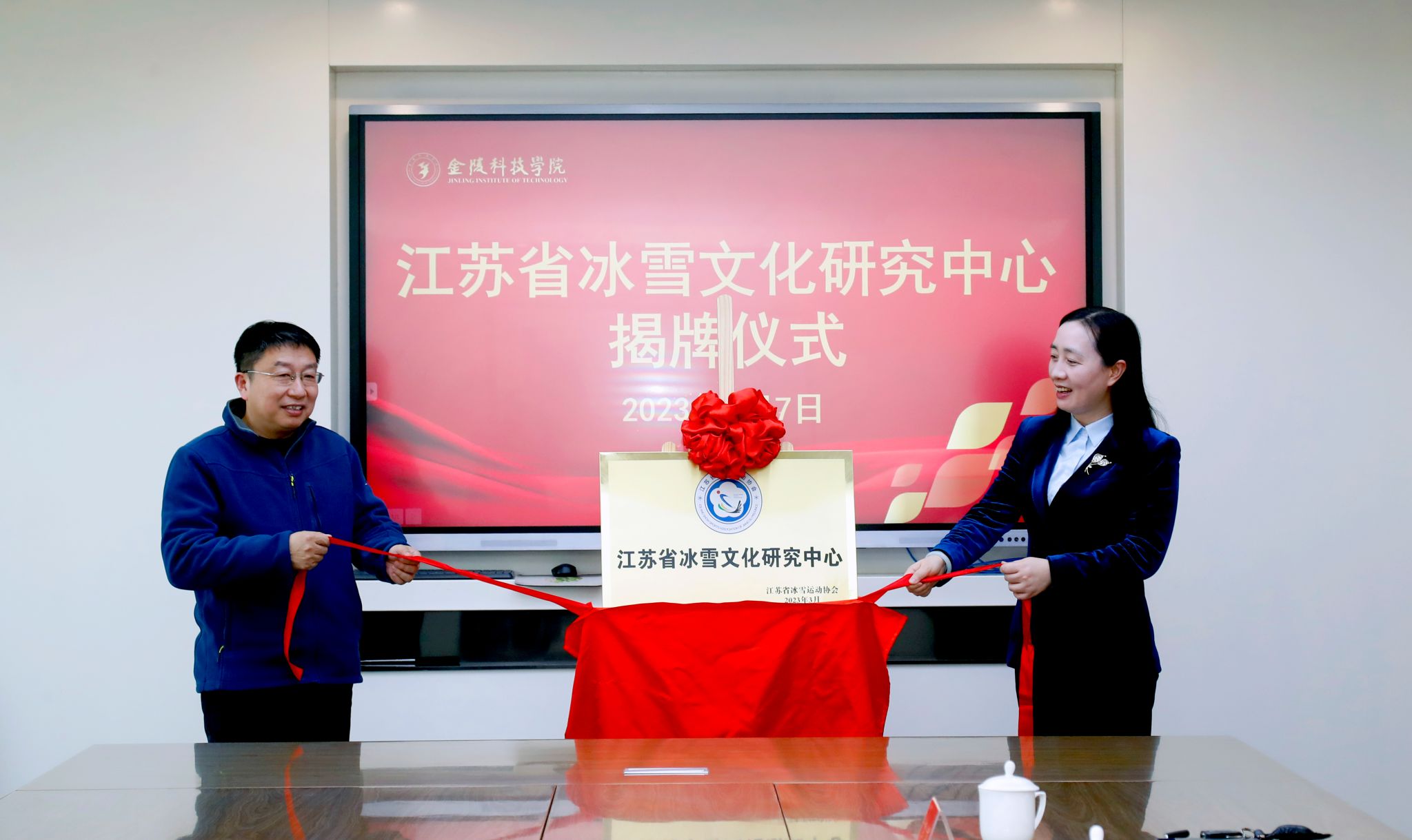 顾晓燕与朱晓军共同为江苏省冰雪文化研究中心揭牌。