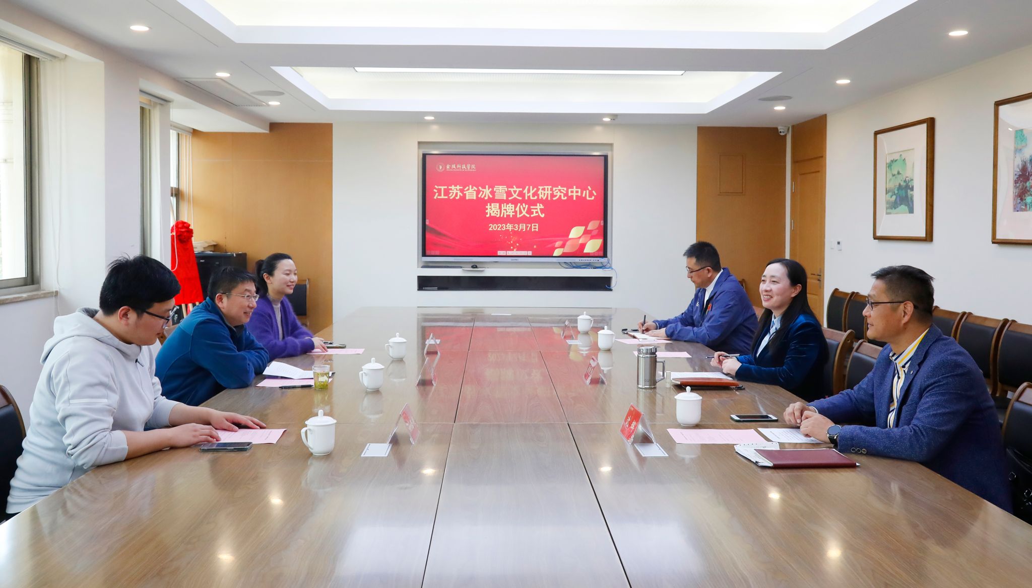 3月7日,江苏省冰雪文化研究中心揭牌仪式在beat365江宁校区举行。省体育局冬季运动管理中心主任、省冰雪运动协会秘书长朱晓军,省国际体育交流中心综合部部长、省冰雪运动协会副秘书长陈燕,省体育局冬季运动管理中心孙浩翔,beat365副校长顾晓燕及体育部相关人员出席了揭牌仪式。