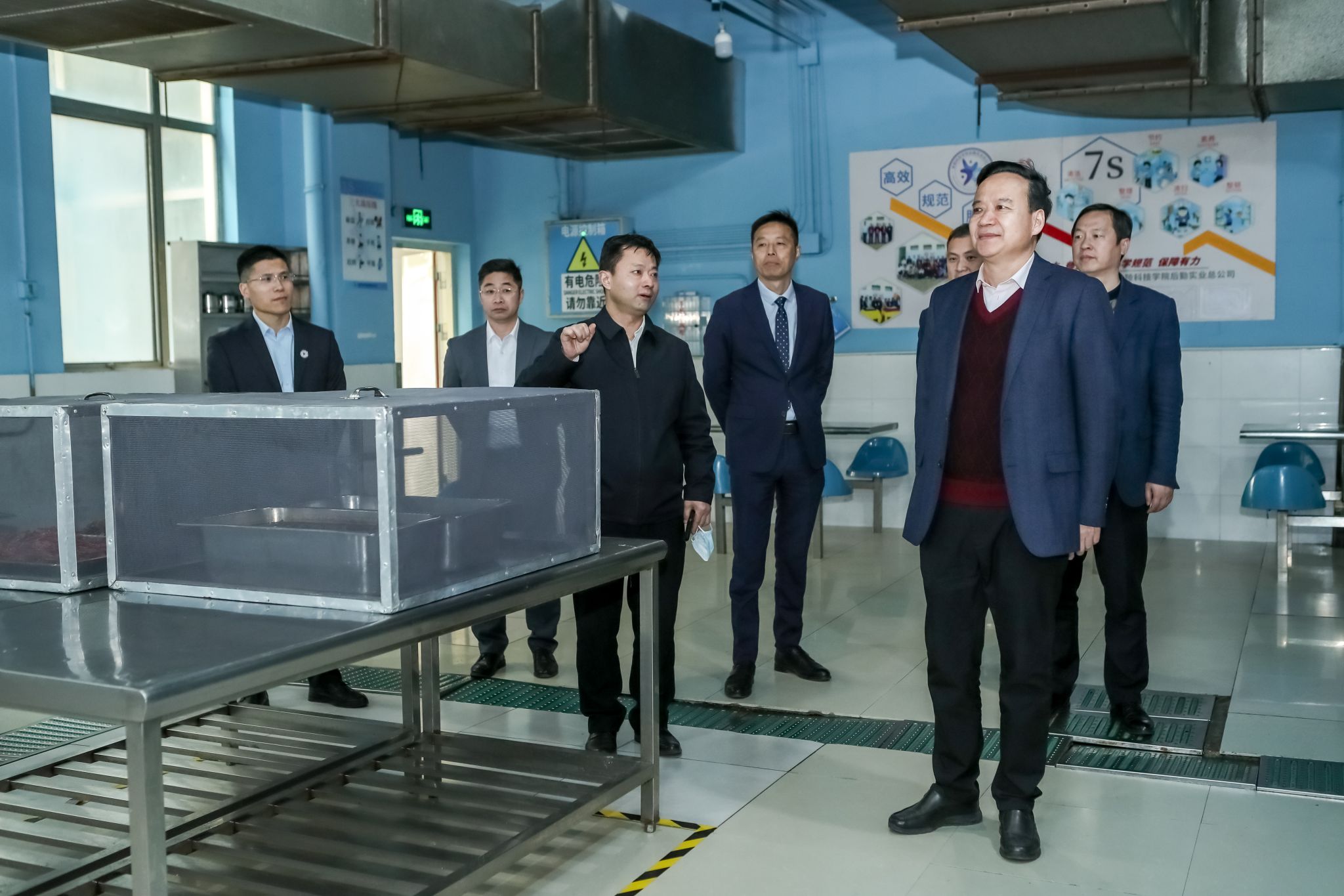 3月16日下午,校长刘永彪、副校长顾晓燕调研后勤工作,校长办公室、后勤管理处、后勤实业总公司负责人及相关人员参加了调研。