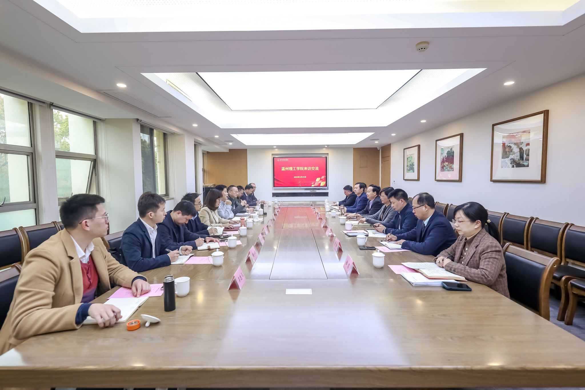 3月23日,温州理工学院校长周文龙率领副校长郑华、副校长孙芙蓉、郭京(副校级)及部分职能部门和二级学院负责人来beat365调研交流。校长刘永彪、副校长倪杰热情接待了周文龙一行。