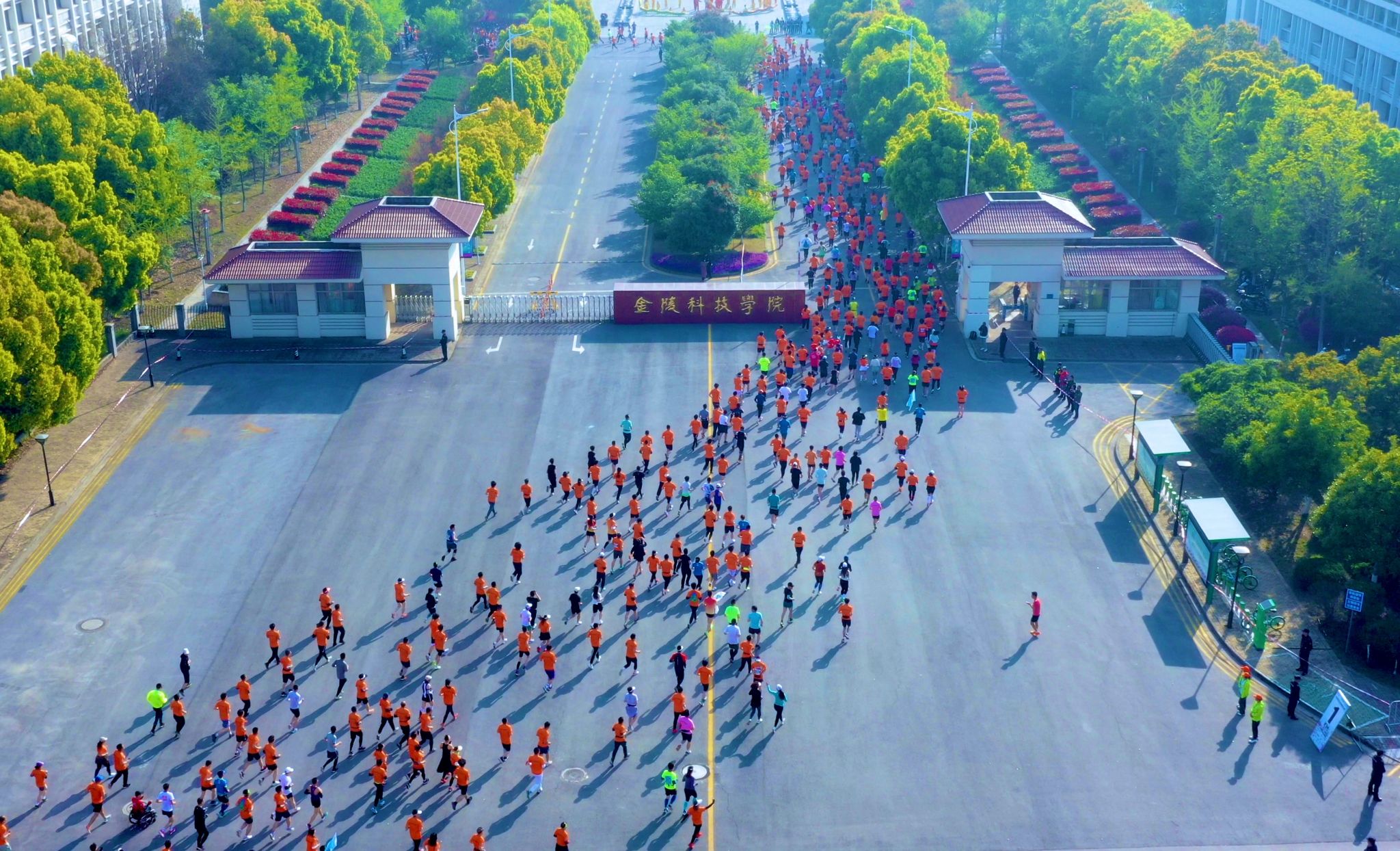 马拉松参赛队伍穿越beat365校园,感受金科热情