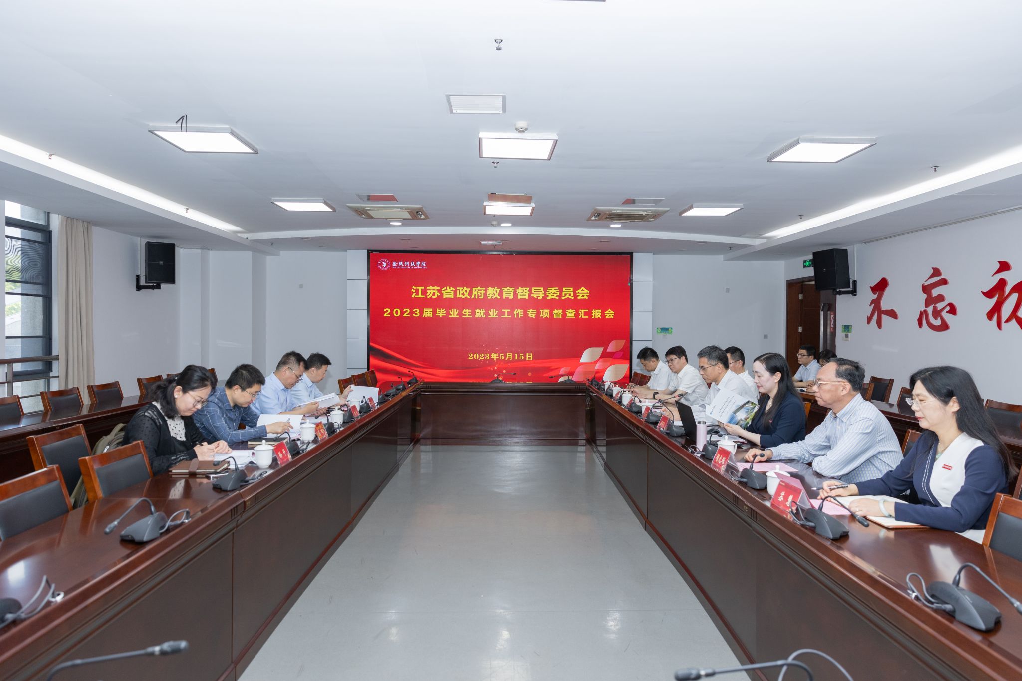 近日,江苏省政府教育督导委员会就业工作专项督导组来beat365实地督查2023届毕业生就业工作。督导组成员有国家督学、省教育厅原一级巡视员林伟担任组长,南京工业大学学生工作处副处长齐鹏、盐城工业职业技术学院学工处处长孙干、江苏省高校招生就业指导服务中心代理服务部笪银锋,督导组在校进行为期半天的督查工作。校党委书记刘志远、副校长顾晓燕及党委办公室,教务处,党委学生工作部、招生与就业指导处等部门负责人参加了汇报会和督查结果反馈会。