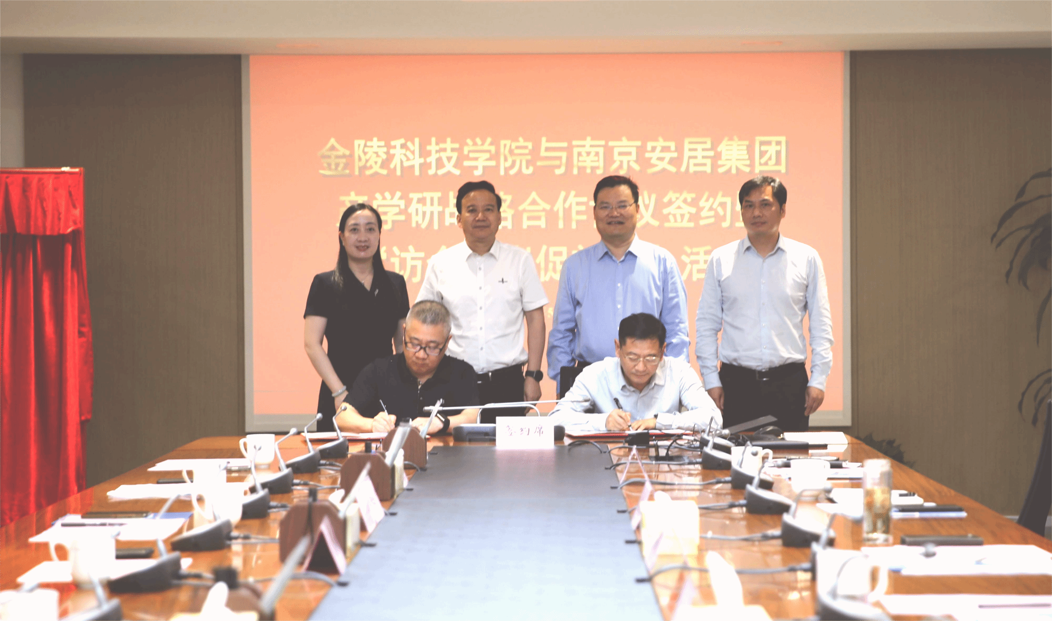 5月30日上午,校长刘永彪、副校长高永祥、副校长顾晓燕带领校长办公室、合作与发展规划处、科技处、招生与就业指导处、基建处、建筑工程学院、园艺园林学院等部门(学院)主要负责人赴南京安居建设集团(以下简称“安居集团”)开展产学研战略合作协议签约暨“访企拓岗促就业”活动。安居集团党委书记、董事长戴康顺,总经理、党委副书记黄绍斌,党委副书记仇白羽及党群工作部、工程建设部、综合办公室、人力资源部、安居保障房公司等相关负责人参加活动。