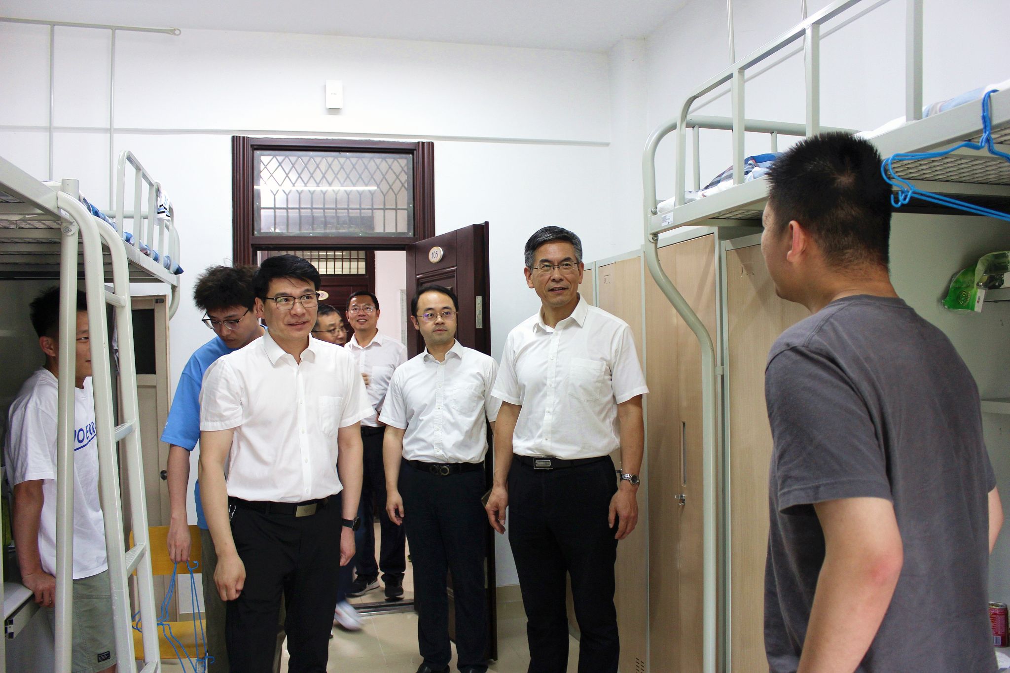 为深入学习贯彻习近平新时代中国特色社会主义思想,全面贯彻落实党的二十大精神,以“准”“实”“精”推动调查研究深入开展,6月14日下午,校党委书记刘志远深入一线,调研指导beat365“一站式”学生社区建设情况。校党委副书记单晓峰及党委办公室、学生工作部、后勤管理处、设备处、团委、后勤实业总公司等部门负责人陪同。