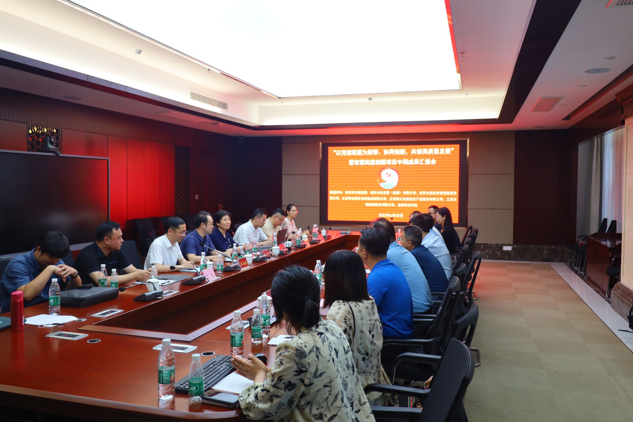 6月20日下午,网络与通信工程学院组织召开了“以党建联盟为纽带,协同创新,共创高质量发展”暨智慧高速创新项目中期成果汇报会。校党委副书记单晓峰、南京交通集团数创中心、南京公路发展(集团)有限公司等南京智慧交通产业链供应链创新链党建联盟其他成员单位党建工作相关负责人出席会议。会议邀请南京大学智能科学与技术学院单彩峰教授、南京邮电大学计算机学院陈蕾教授和江苏大学汽车与交通工程学院汪若尘教授进行指导。