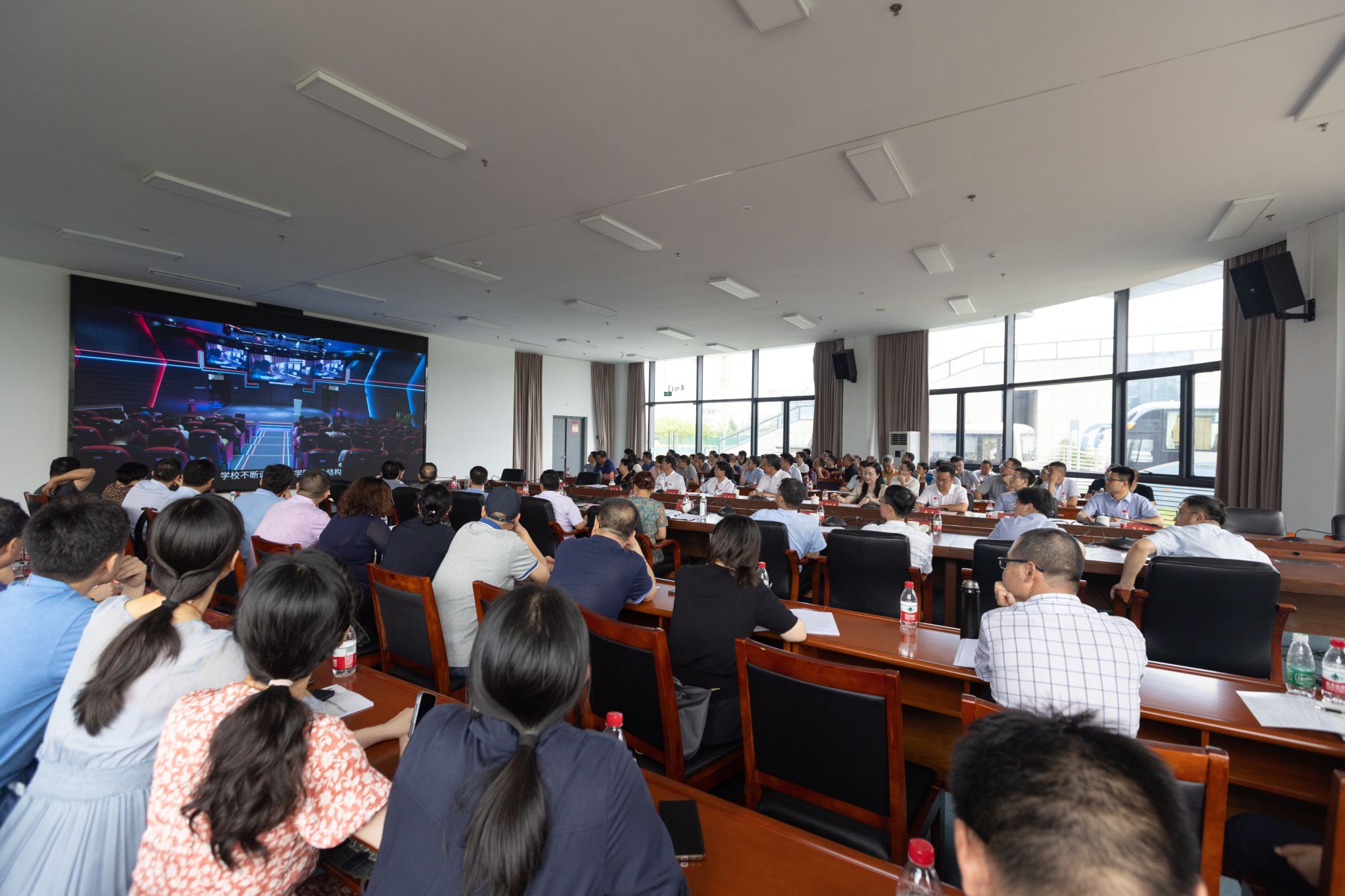 7月4日下午,衢州学院党委书记杨玲、校长郑友取带领校领导班子和中层干部一行70余人来beat365调研交流。beat365党委书记刘志远、副校长顾晓燕、副校长叶智锐及党委办公室、教务处、科技处、研究生处、教学质量评估中心负责人参加交流座谈。