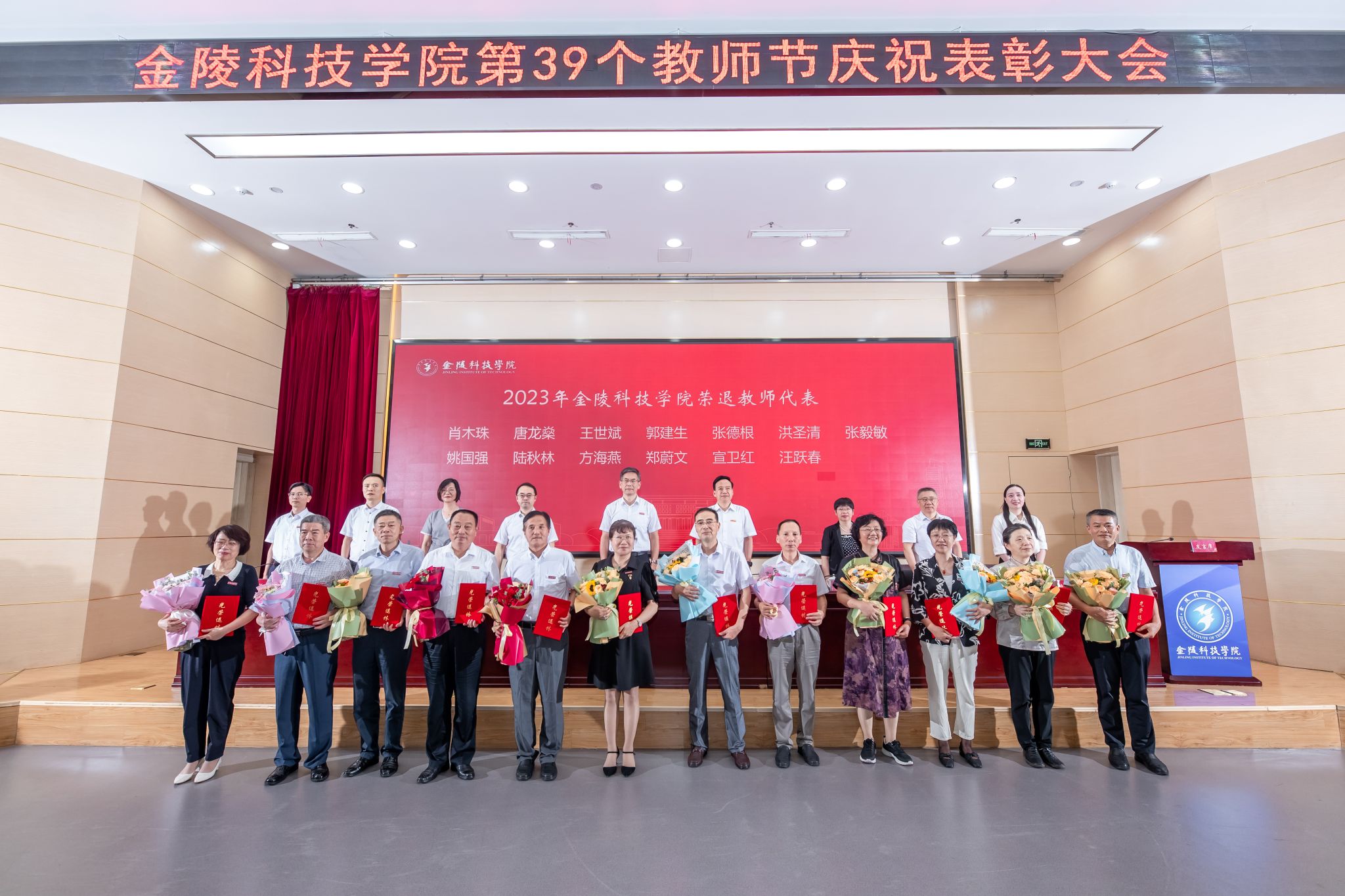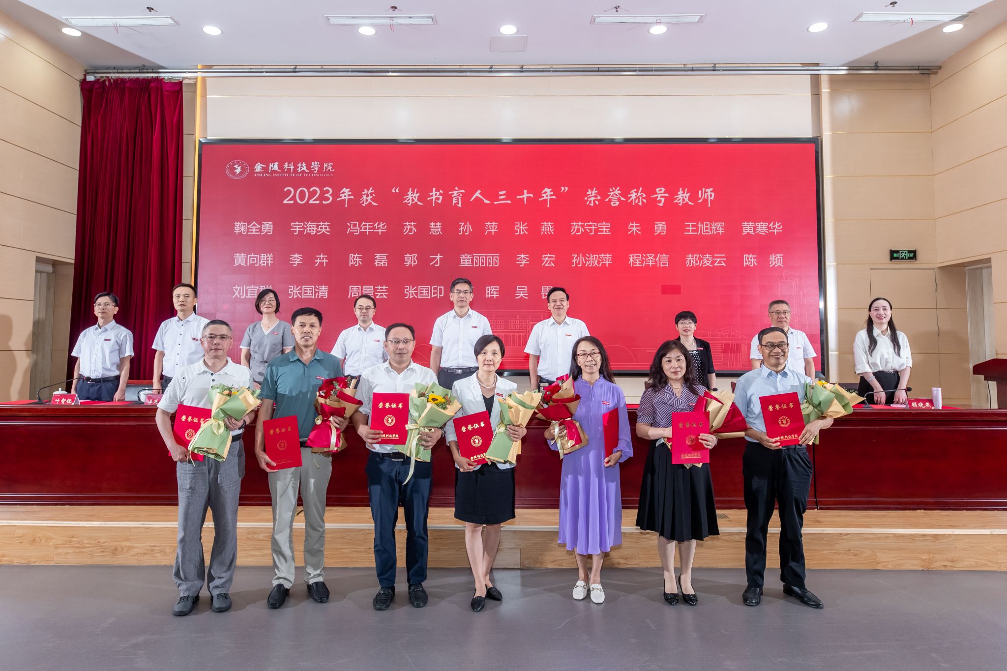 校领导与2023年获“教书育人三十年”荣誉称号教师代表合影