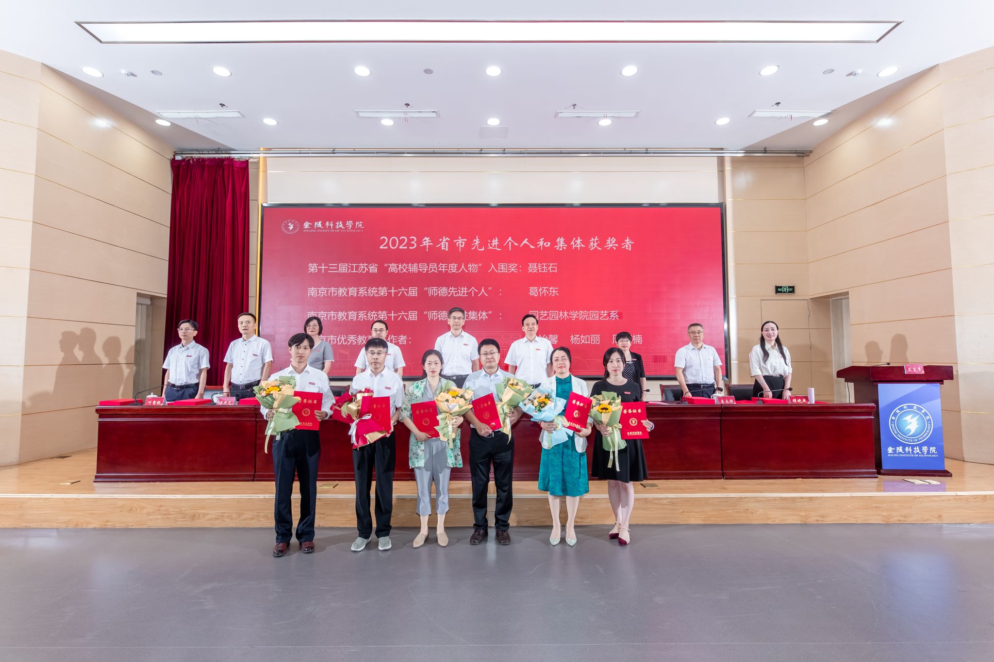 校领导与2023年省先进个人和集体奖项获奖教师代表合影