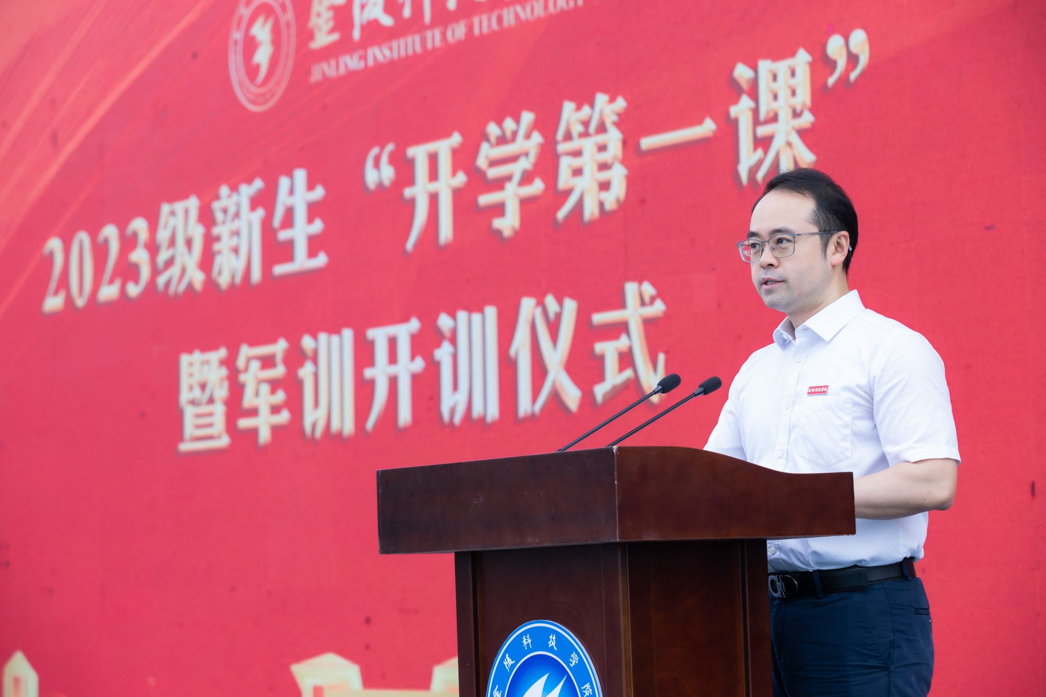 9月15日上午,beat365在江宁校区北区运动场举行2023级新生“开学第一课”暨军训开训仪式。校党委书记刘志远,94860部队李姬上校,校党委副书记单晓峰,副校长顾晓燕出席活动。党委办公室、党委组织部、党委宣传部、教务处、党委学生工作部、党委保卫部、团委等部门负责人,各学院学生工作负责人,新生辅导员,承训部队教官及2023级全体受训新生参加了活动。活动由单晓峰主持。