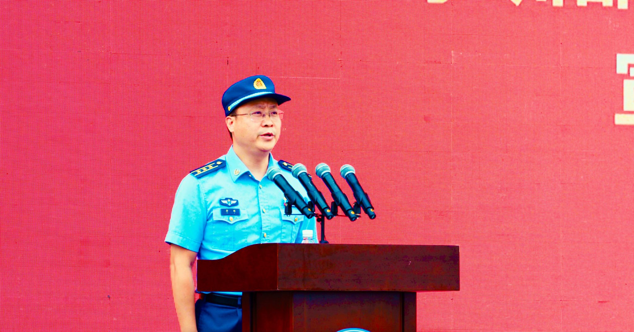 单晓峰在军训开训动员讲话中指出,今年9月是“全民国防教育月”活动,在这个特殊的时间段,希望同学们能保持高昂的斗志,刻苦训练,以优异的成绩,践行“踔厉奋发强国防 勇毅前行向复兴”的庄严承诺!
